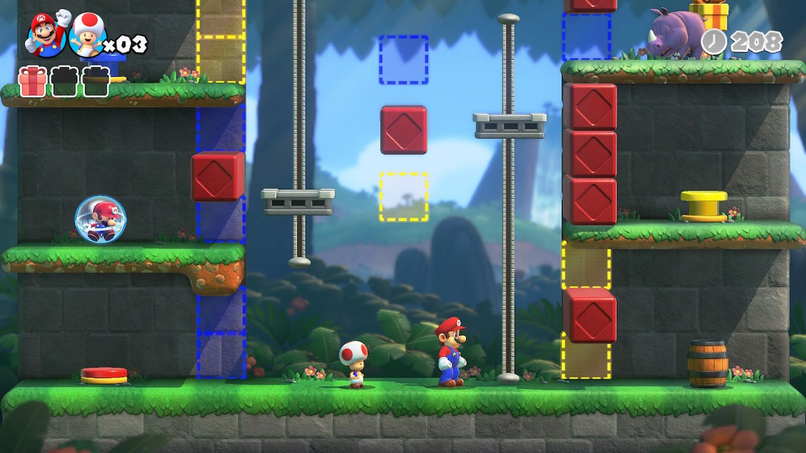 Thankfully, Nintendo has always been a huge advocate of couch co-op and playing through Mario vs. Donkey Kong with a friend is a blast and arguably the best way to experience the title. One player will play as Mario, while the 2nd player takes the reins of Toad, with both players being completely free to roam the level on their own. My wife and I would often scope out a room using the free view mode, choose targets, and then run off in separate directions to accomplish our goals. In the moments when we had to work together we had a blast, yelling out commands and attempting to dodge challenges while often getting in each other’s way. We had a great time with the game during its short campaign, but despite that I can’t see myself coming back to it much in the future.