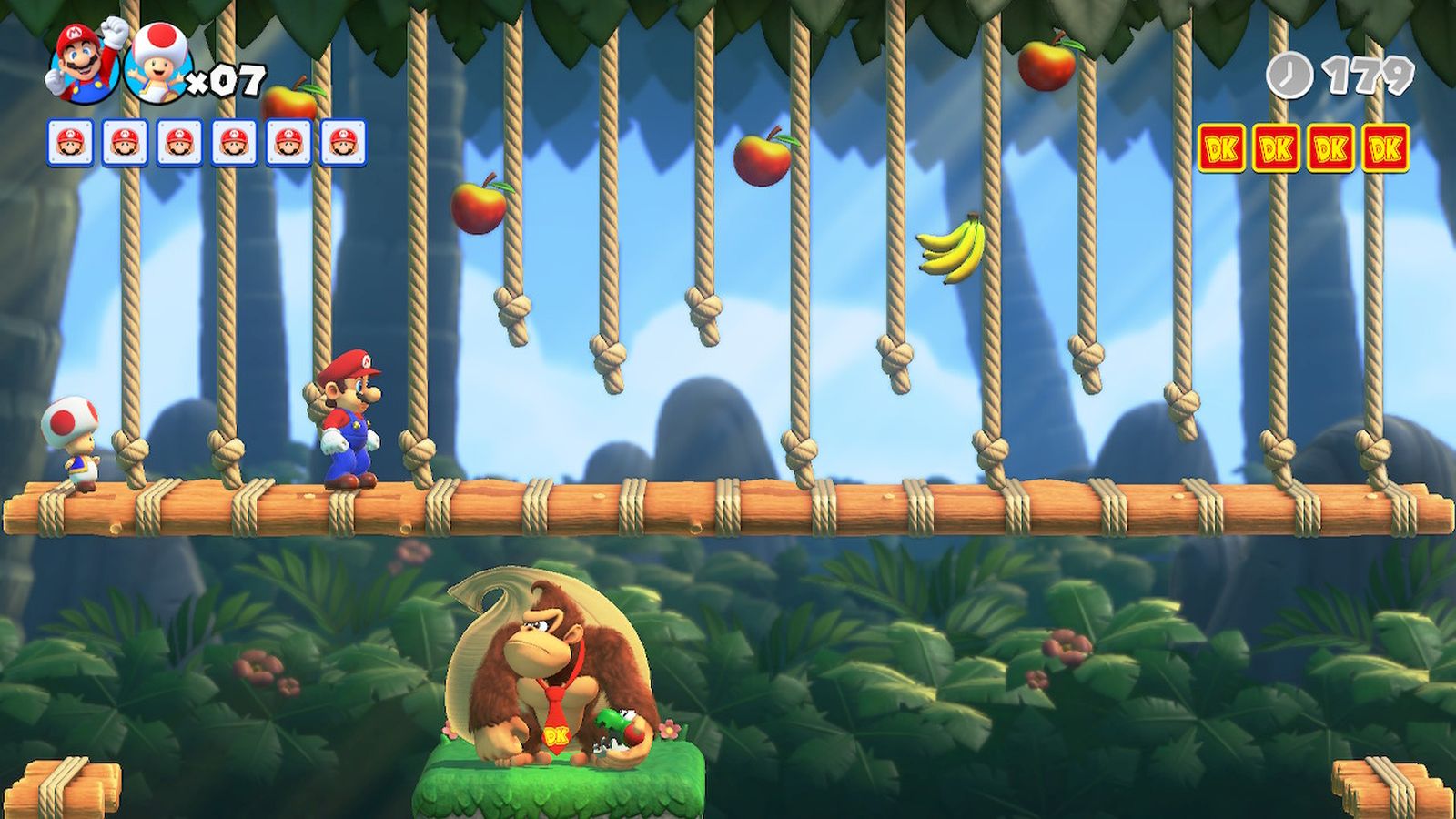 During gameplay you’ll see a decent variety of enemies and locations which you’ll recognize from both the Mario and Donkey Kong series of games, and Mario boasts many of the same moves, including an extremely helpful back flip. New to Mario’s arsenal is a handstand and spin, with the handstand being used to launch to higher areas or to protect Mario from falling debris. Personally, I wouldn’t want to have to maintain a handstand every time objects fall from the sky, but Mario, as we all know by now, can handle even the most athletic of feats with ease.