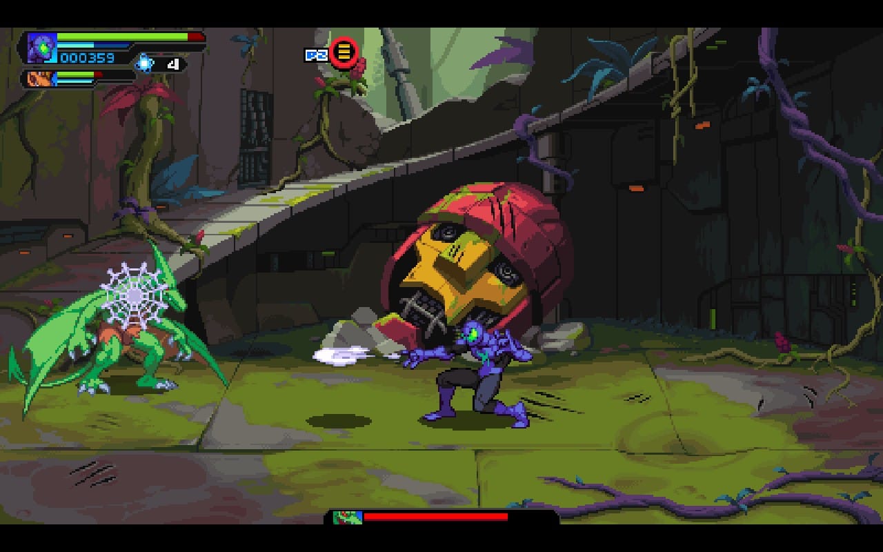 As a rollercoaster ride through the Marvel universe the variety makes for an awesome time, but not all of the gimmicks work for me. The game can already get pretty hectic, and some of the gimmicks, like falling meteors or flying drones, further clutter the screen to the point of being a bit too chaotic to reasonably juggle. In general, I liked some stages far more than others, and that extended to the bosses. My least favorite fights in Shredder’s Revenge were the ones that had incredibly long periods of invincibility while they forced you through different attack patterns, and Cosmic Invasion indulges in a few of those as well.