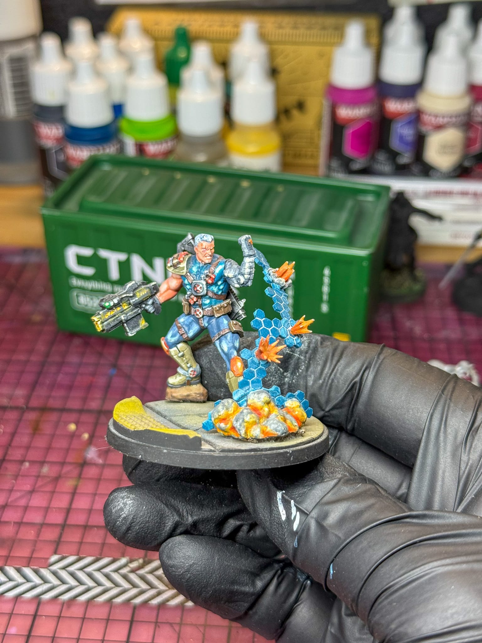 Cable is pretty much my favorite mutant character in the Marvel Universe. Man out of time, uncontrollable metallic virus, unheard levels of psychic powers, big guns, big pouches... I loved the look and feel of him, and even before I played MCP, I had purchased a Cable model just to paint.