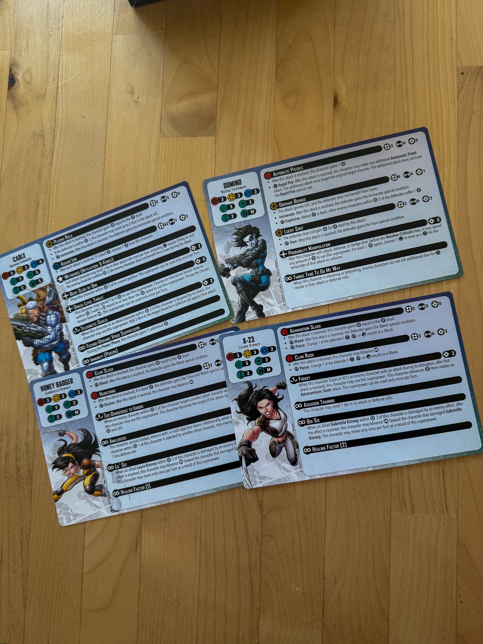 The Character Cards and Team Tactic Cards for X-Force feature great artwork