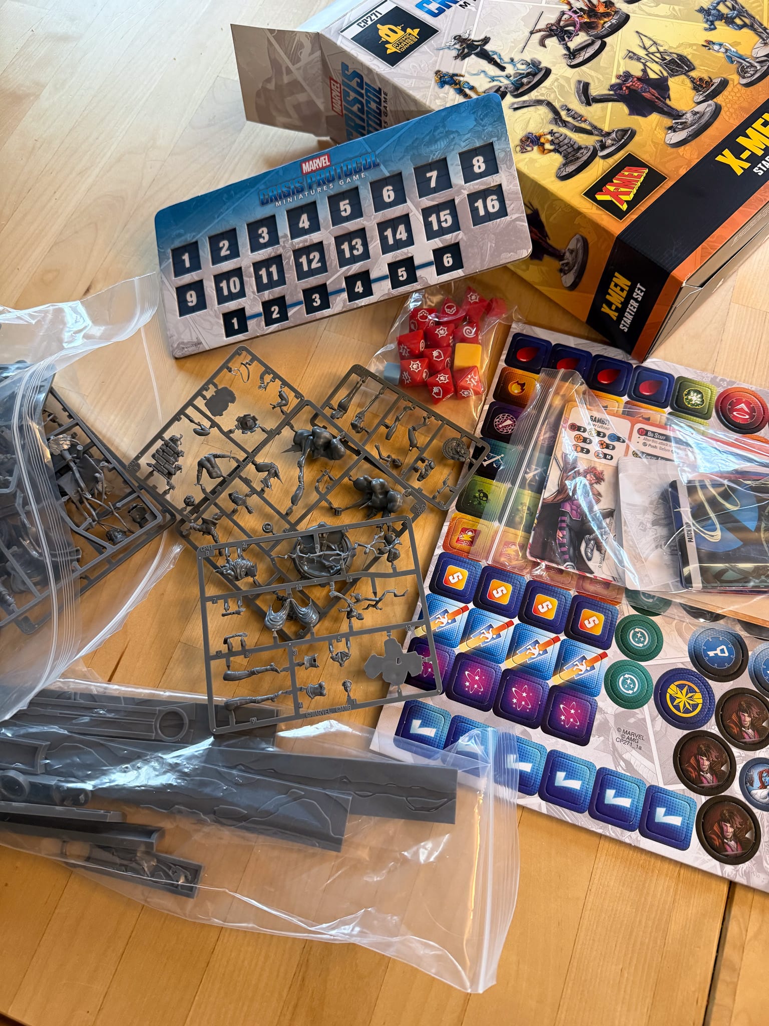 Atomic Mass Games sees you, and will hook you up with a series of starter sets. This review will focus on the X-Men starter set, which pulls together 10 classic characters, range & movement tools, tokens, dice, and all of the current cards for the models, all for under $100 USD.