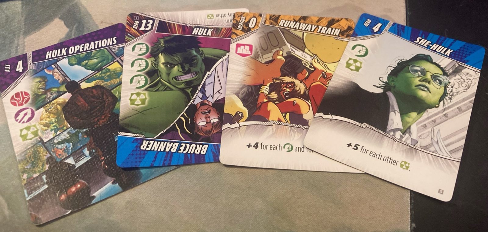 Another fun element of Marvel Remix is the discard pile itself. When a player discards a card it is meant to be face up. That way, if someone drops something and you need it, you can get that card and it doesn’t add to the discard total pushing the game to end. However, there was a round that I ended up with a lot of Hulk/Gamma cards and I wanted to end the game quickly so my friends couldn’t get more points. So I started drawing Remix cards quickly trying to get us to 10 as soon as possible.
