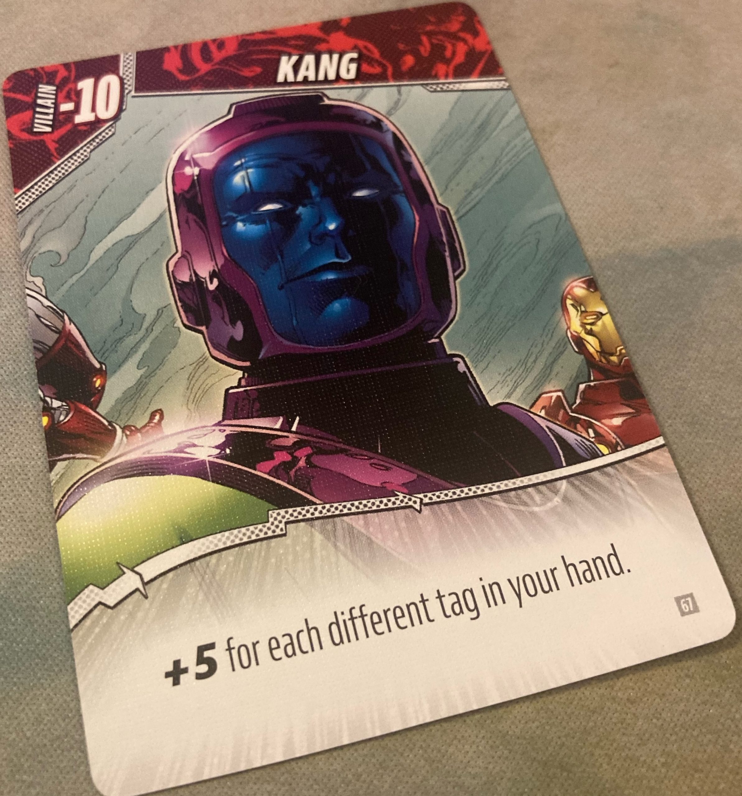 The Marvel Remix box comes with 61 Remix cards and 18 Villain cards. For this review, we were given the promo card for Squirrel Girl. The deck seemed very well balanced with the most powerful card in my groups’ opinion being Kang who starts at -10 points but gives you +5 for every tag in your hand. As you can tell by our scorecards (featured below) we got better the more we played and we felt it. It was also a game where if someone ended up with over 100 points, we generally congratulated them for getting such a great combination. So it’s competitive, but also, some hands are just impressive on their own.