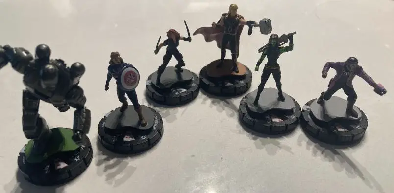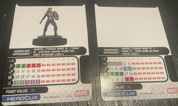 Around 2002-2005 my family started getting really into the Heroclix series. Not understanding a lot of specific details about the game, we understood the goal – defeat the opposing team on the battlefield. Heroclix had a unique stats system which was on the figure itself. The dial system made it easy to see how much damage a hero had taken, and easy for the opponent to see the stats on the table as well. I remember having The Flash, Wolverine, Aquaman, Eclipso, and Nightwing as my team (yes, I know they’re not all DC or Marvel, I was 10). It was a game that made sense then, but what about now? Here, about 20 years later, the Heroclix style game is back in my life with Marvel Studios: What If…? Miniatures Game.