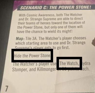Oddly enough, there were issues with some of the details. To start, poor Party Thor didn’t get any art on his character’s card sheets. They’re just an empty area on the card while everyone else got both a full miniature picture on one side and an up close face shot of the miniature on the other. When it came to the booklet and scenario cards themselves, we found a few typos, which seemed odd given the normal attention to detail inside manuals such as these. While this didn’t affect gameplay, it did affect the overall experience and made the game feel somewhat unfinished. Along those lines, we had some issues during our time playing the scenarios where the scenario would call for us to do something such as “hide the Space Stone” and the “quick start rules” had nothing on how to “hide” an object, and while looking at the advanced rules, we found nothing on how to either. That being said, we simply just agreed on a hiding spot and moved forward. These might be a tad nitpicky, but with the level of detail in other aspects of this game, to have such a simple detail missed seemed odd.
