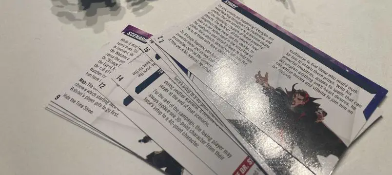 The thing that stood out to me the most about Marvel Studios: What If…? Miniatures Game was the storyline they told through the scenarios. As mentioned earlier, these are great for learning how the game works. However, more than that, they’re a great way to learn the characters, and by the end we had come to love our team and was disappointed if we didn’t get to use one of our favorites. The story is about The Watcher and Dr. Strange Supreme both hunting for the Infinity Stones. During this time they scour the multiverse to find them. Your teams are generally the following: