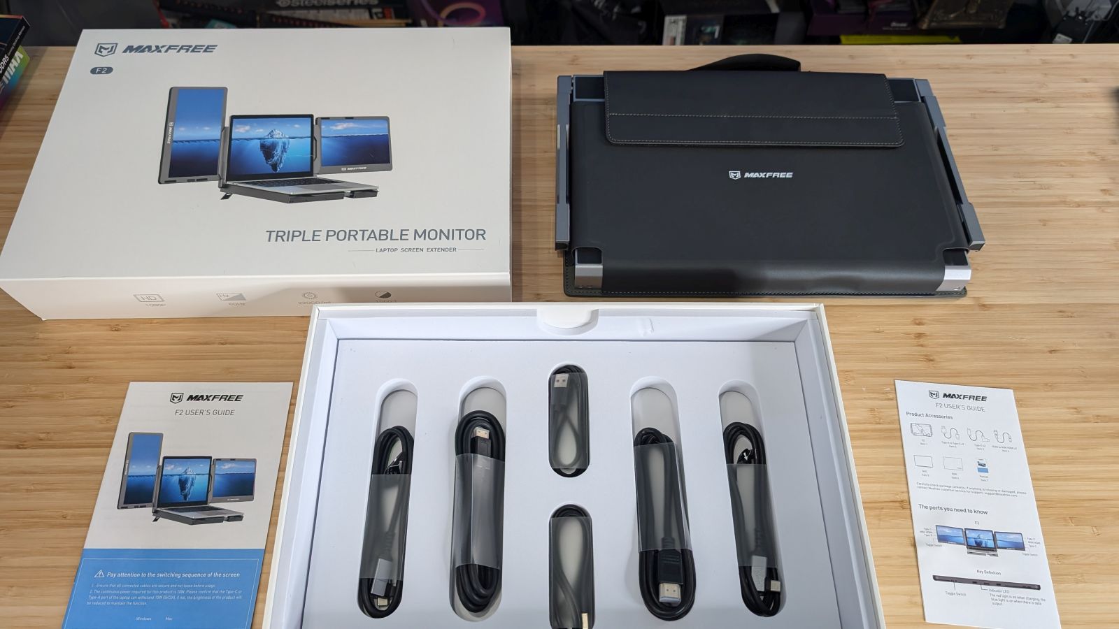 The Maxfree F2 14″ Triple Laptop Screen Extender, to use the formal name, is a triple monitor solution that self-bills as highly-portable, flexible, built for “enhanced cooling”, and incredibly versatile. When it arrived, I was immediately sure of a few of those things the moment I took it out of the box. Let’s dig into the specifications.