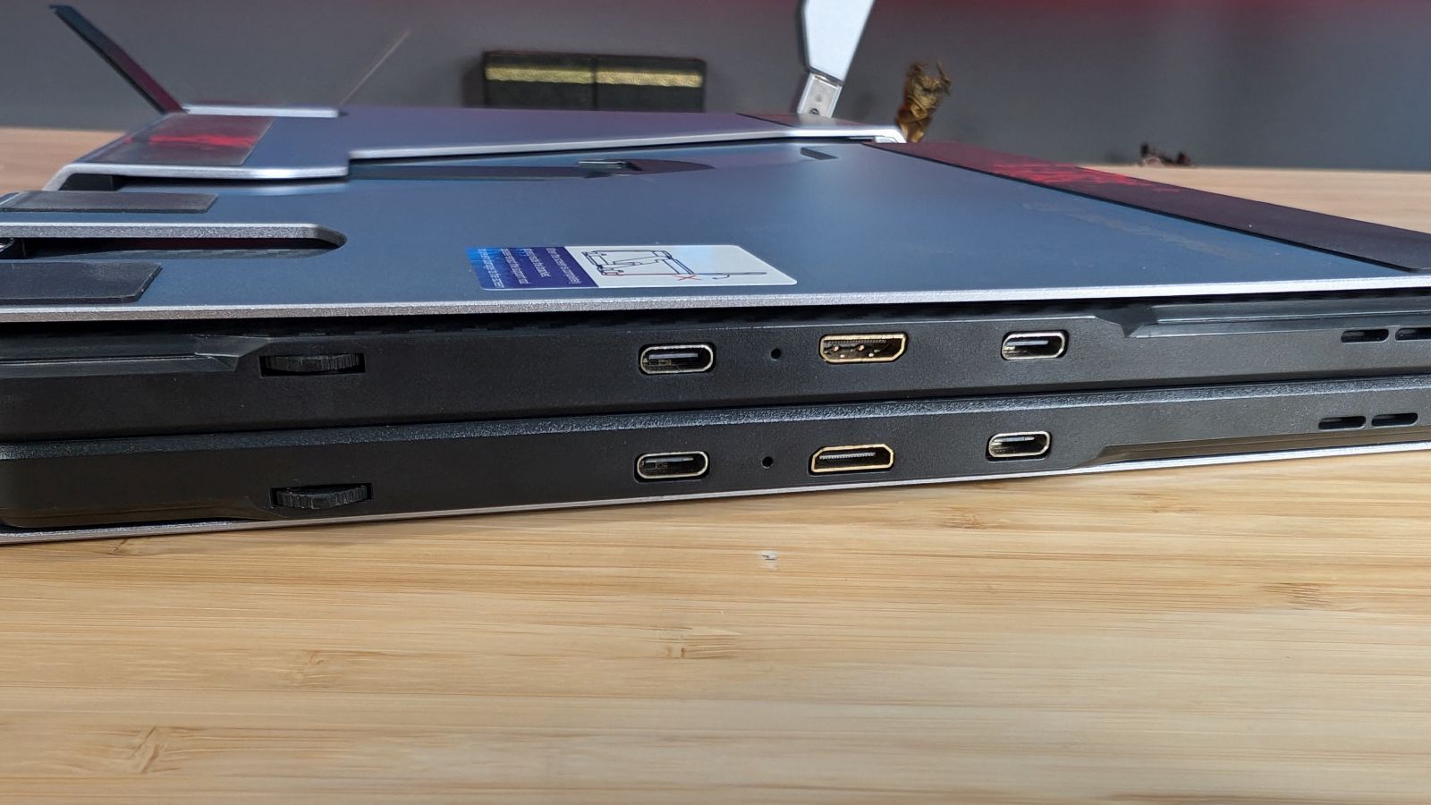 The combined weight of the aluminum chassis, the two monitors, and the carrying case is roughly 5.7 pounds. That’s certainly heavier than the various kickstand solutions out there, but the peace of mind that comes with stability, proper ventilation, and the complete elimination of the possibility that it’ll break my hinges makes that a very small price to pay.