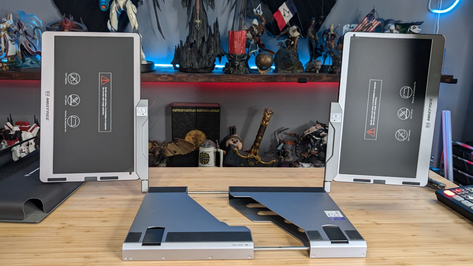 If you travel like I do, then you understand just how frustrating it can be to suddenly go from three monitors down to one. Things that go quickly, like data entry or programming, are suddenly rather painful. I’ve reviewed several solutions for this problem, but all of them have disadvantage – they hang precariously on the back of your laptop monitor. Even with a kickstand solution, this presents a real danger for the longevity of the monitor’s hinges, as well as being a second away from disaster should somebody bump the table. Maxfree might just have the solution to that problem, and I was eager to test out the F2 to find out.
