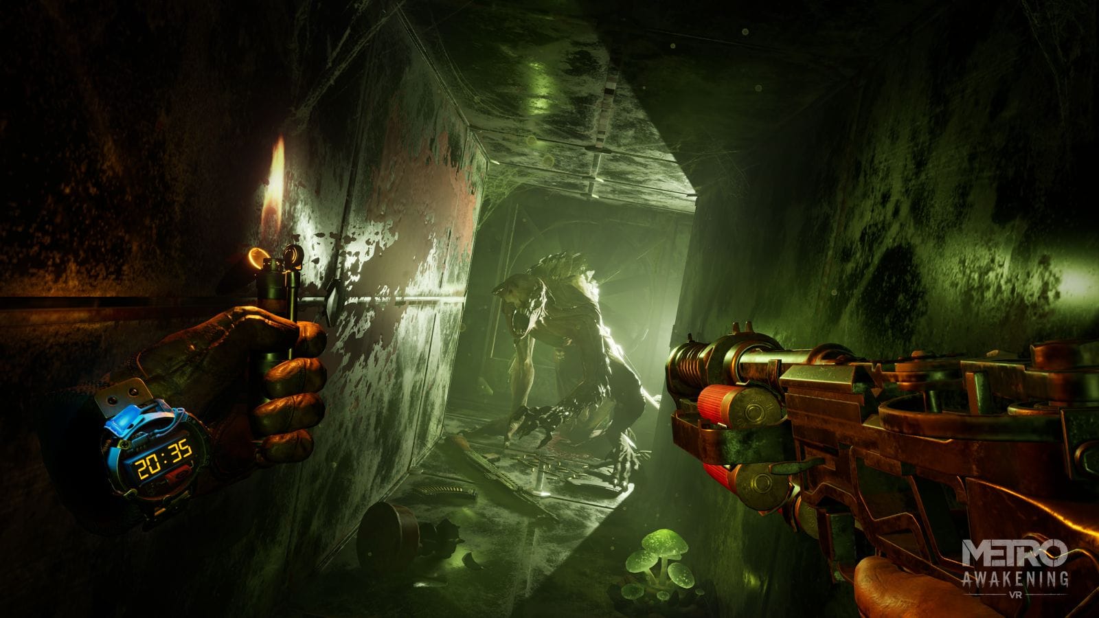 If you’re a fan of the Metro series, you’ll immediately be impressed by how well everything translates to VR. The makeshift community of the underground metro system makes for a fascinating VR arena to explore, filled with dilapidated homes, ramshackle bars, and small glimpses of life attempting to persevere despite hardship. Metro Awakening also makes great use of its claustrophobic hallways for tension, keeping the player constantly in fear of what may be lurking around the corner. Gameplay is further elevated by impressive sound design with far off growls, creaking floorboards, crumbling ceilings, swift moving spiders, flies buzzing around the dead, and a bevy of other realistic sound effects all working in tandem to immerse you into your surroundings. Even the most steadfast of players will find themselves unintentionally hesitating as they round a dark corner and hear the low rumblings of a growl from somewhere up ahead. For a game that is not necessarily a horror game, Metro Awakening sure has its share of well done creepy moments and even a few jump scares.