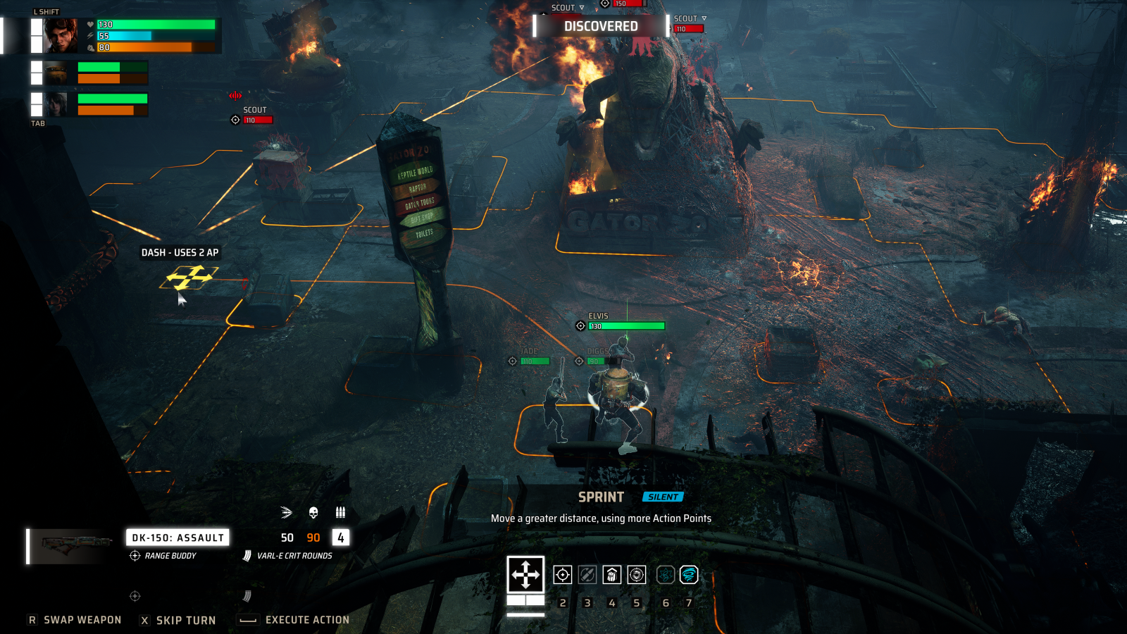 Despite the missed opportunity for more discovery and exploration, Miasma Chronicles’ focus on turn-based tactical combat hits the mark. It evokes memories of games like Mutant Year Zero: Road to Eden, X-COM, and even Mario + Rabbids, yet it introduces unique elements that set it apart from the crowd. The standout feature is Elvis’s glove, which allows him to manipulate the Miasma, providing diverse powers. The game seamlessly integrates stealth mechanics into combat as well.