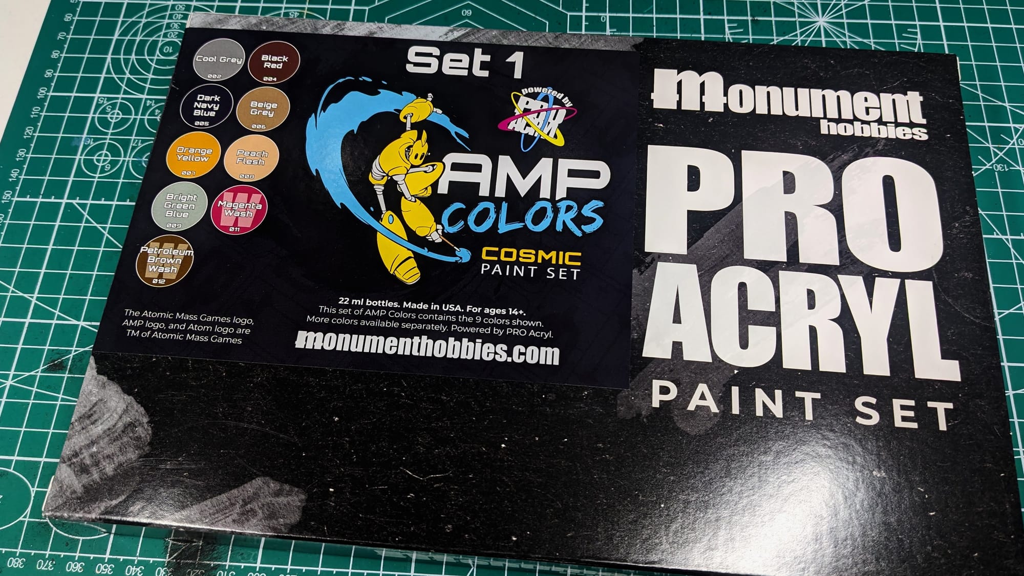 Monument Hobbies sent me review copies of their latest line, Atomic Mass Paints Colors Cosmic Sets 1 and 2, which they released in March 2025. I had the opportunity to talk with their team at the convention this year about this new paint partnership with Atomic Mass Games and was eager to try out the line. These sets are meant to give new and veteran painters a collection of colors for their space-themed models, such as Star Wars: Legion, Star Wars: Shatterpoint, and Marvel: Crisis Protocol. While this is not necessarily a complete starter, what it does provide are some fantastic color choices from the Monument Hobbies superior acrylic formula.