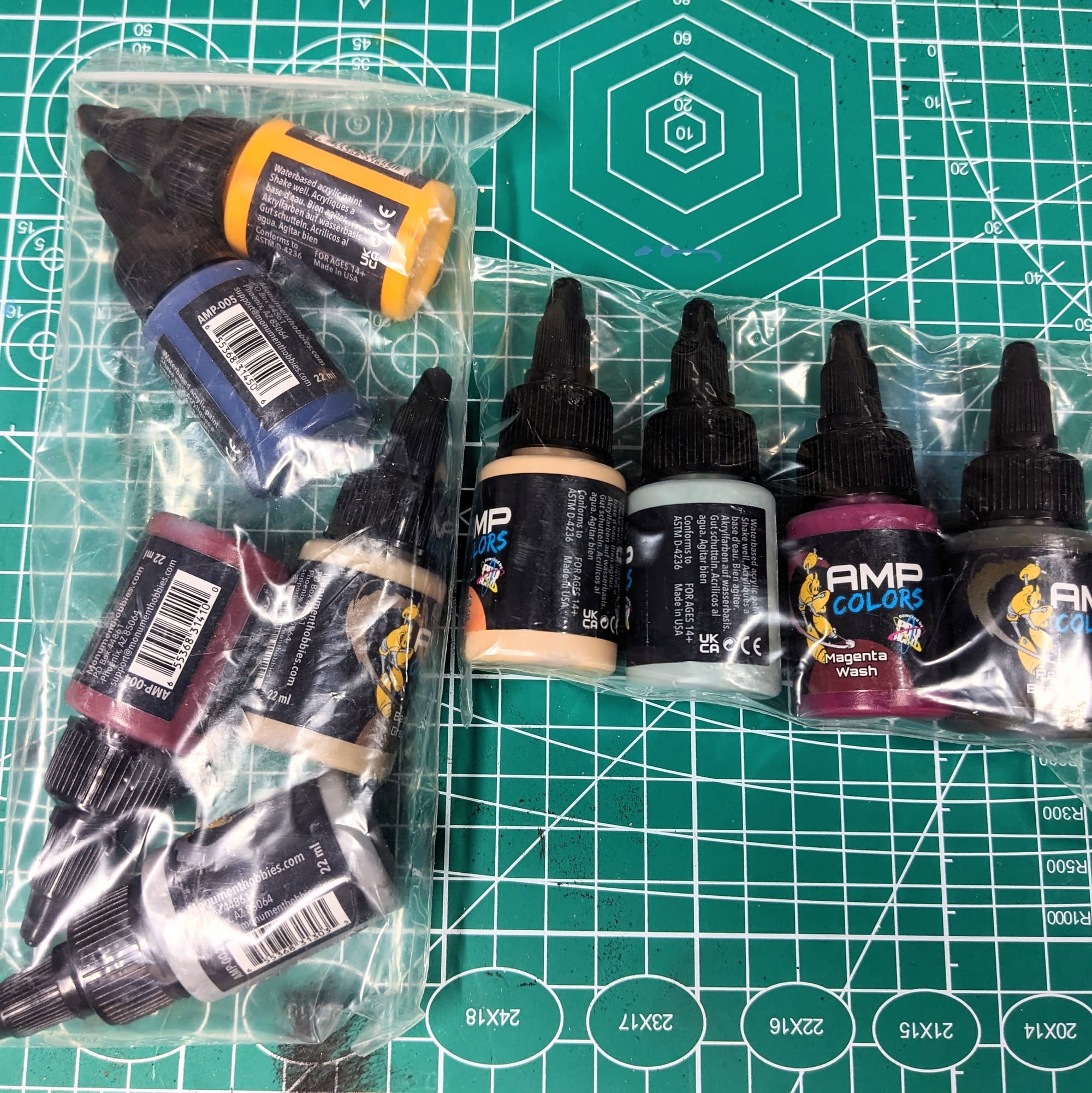 For comparison, Citadel 12ml paint pots are at about $4.55, or $0.38/mL, and 18mL paint pots are at about $7.80, or $0.43/mL. Army Painter 18mL dropper bottles are about $4.70, or about $0.27 mL. While both have some great paints to them, most require a medium to mix in, and Citadel paints don’t come with agitators.