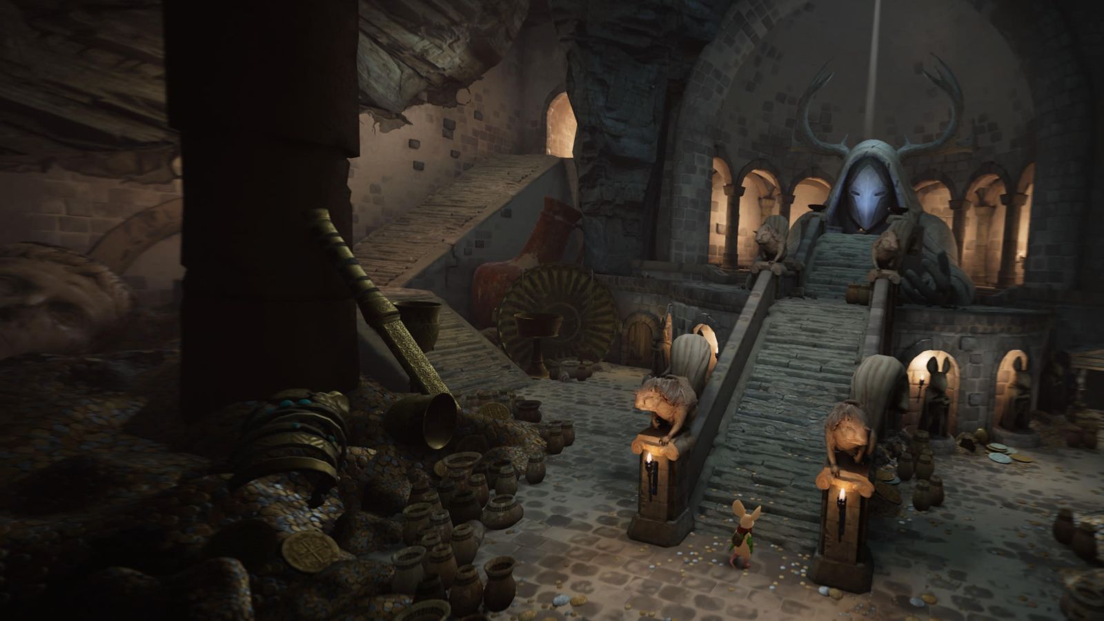 Book II begins where Moss ended, immediately thrusting the player into familiar settings. Our hero is still determined to complete her mission of preventing the approaching evil from taking over the land, and to do so she must collect five glass relics that are spread throughout the world. Completing Moss before jumping into Moss: Book II isn’t required – there is a brief recap of the events of Moss before Book II begins – but I’d still highly recommend doing so. Moss is an incredibly short adventure but experiencing it will greatly strengthen the more emotional aspects of this story while also providing players with a better appreciation of the improvements made for Book II.