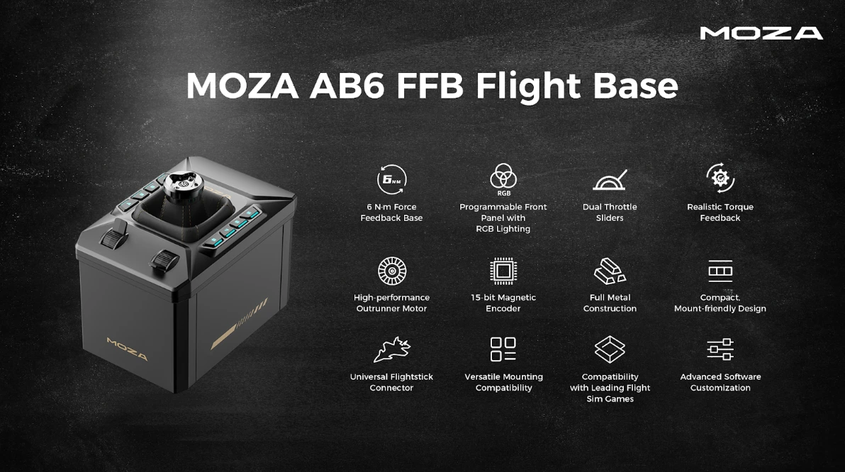 There is force feedback, and then there is force feedback. The difference is night and day, and once you feel the difference I’m going to describe, there’s just no going back. Rumbling a controller is technically force feedback; applying counter-force is also force feedback, though the former is likely what most people have experienced. A notch above that simple vibration approach are all-in-one setups like the T16000M, but these lack force feedback of any kind. Right after that is…almost nothing. There’s a huge no man’s land between these all-in-one setups and ones with force feedback, and nearly all of them are sold à la carte. It’s with all of this in mind that MOZA Racing (who do a LOT more than just racing), put together an all-in-one package of their very own - the MOZA AB6 Flight Simulator bundle. With true force feedback, an included stick, and surprisingly excellent mounting hardware, this setup will have you flying and experiencing a whole new world of immersion in no time.