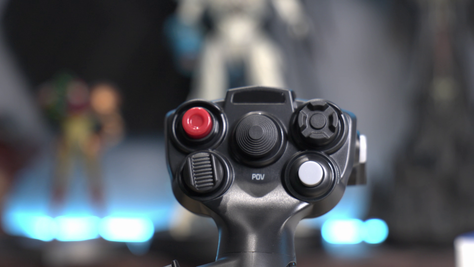 The shell of the AB6 is made of solid aluminum, with a plastic top and faux-leather with stitching for the top of the unit. Also on the top are eight RGB buttons, four on each side of the stick, and two analog sliders on the rear of the device, behind the stick. Obviously, this bundle doesn’t include a thrust lever system of any kind, so these two analog inputs can be mapped to a number of activities, including engines (two independent engines if you were piloting a commercial craft, for example) or as a single engine in a more simplified approach. These simulate a throttle, and as I mentioned earlier, can approximate some of the functions you’d find there. It sticks to the “everything you need is in the box” approach, but it simply cannot replace the real deal. Still, it allows a newcomer to jump in with exactly what they need to get started without the stress of tackling too many choices. By way of example, in Star Citizen, I use the left analog slider to control my engine power, with the right analog slider to engage those engines into forward mode. For my VTOL-capable craft, I use a button to swing the engine into the forward position before flying forward. Ultimately, you could use one as your trim wheel, or flap axis, or to raise and lower your landing gear, or anything else, either as an axis or a binary toggle.