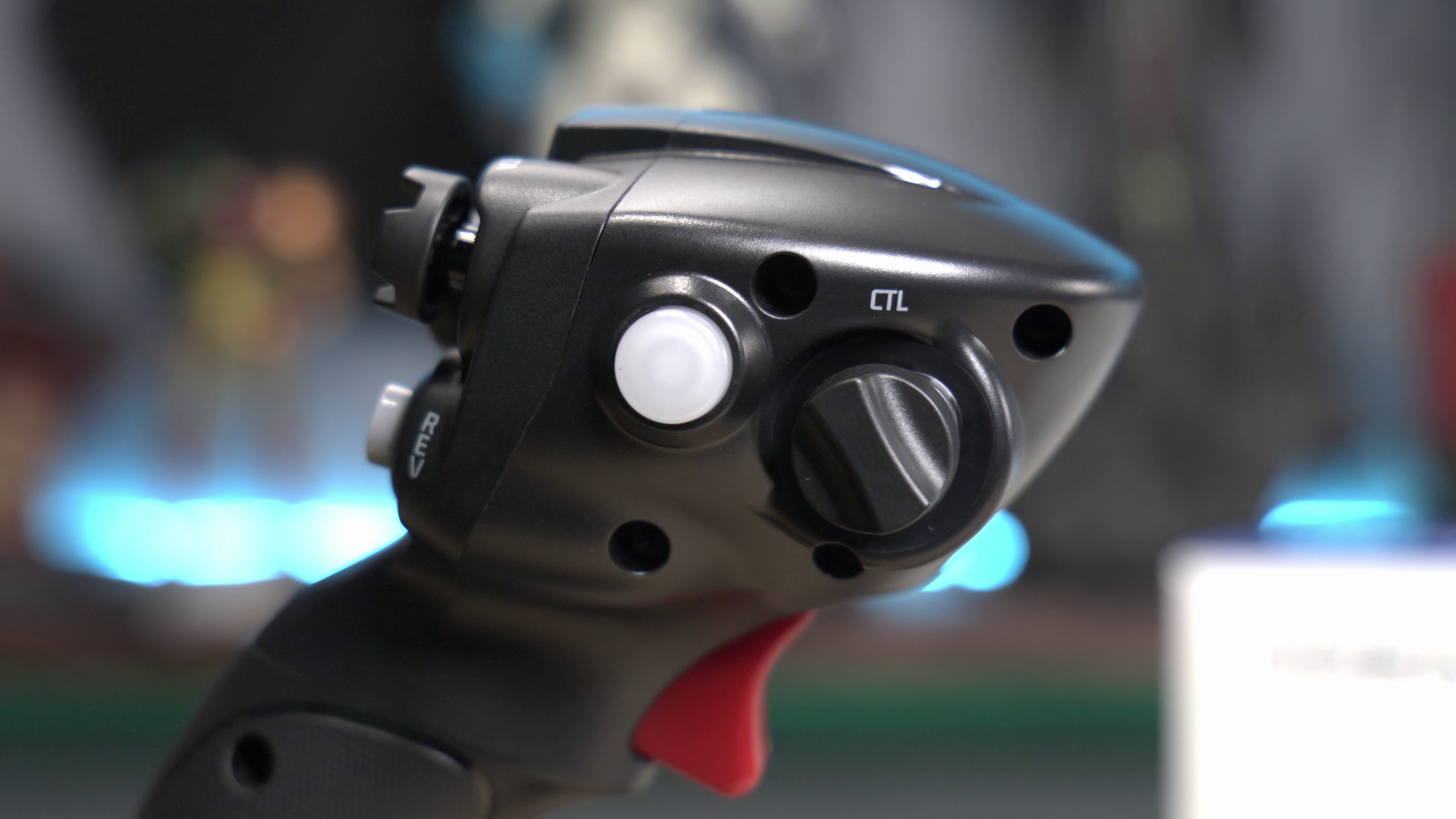 We’re going to start with the second tab, Lights, and circle back to the first tab at the end. There aren't a lot of lights on the base or the grip, but in the Lights tab, you can adjust these. All of them are individually addressable, meaning you can adjust the color, whether it responds to the game inputs (Device) or stays whatever you set it to be (Manual), and the overall intensity -- good in darkened rooms.