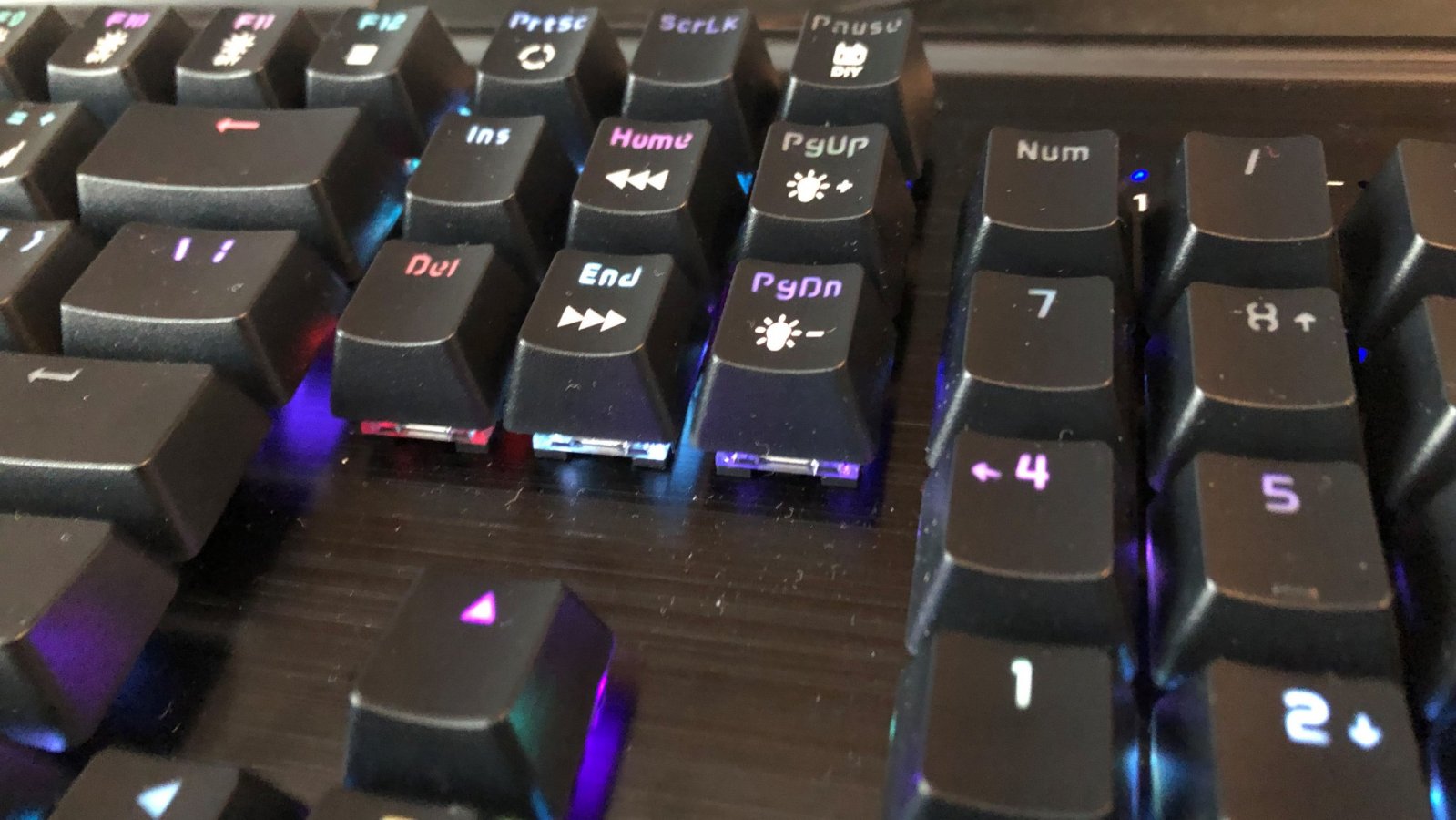 As with many gaming specific keyboards, the HVER PRO lights up! You can download software to program the lights from the store page and choose from multiple presets, such as a moving rainbow effect to a light explosion when pressing a key, or customize your own layout. There are three profiles you can switch between with keyboard shortcuts, so you can change settings on the fly in theory. In practice, it doesn’t switch between profiles but rather your three custom setups. If you want to return to one of the presets you’ll have to open the software back up and swap to it manually. There’s also a setting for programmable Macros which, I’ll be frank, I don’t understand how to use or what they even do. I also feel like you should be able to combine the custom programs with the preset effects in some way, like having WASD lit up red while still retaining the rainbow explosions. It’s not a big deal, since I consider the lights a bonus to a very solid keyboard, but it may bother users looking to have full control over their rig’s aesthetic.