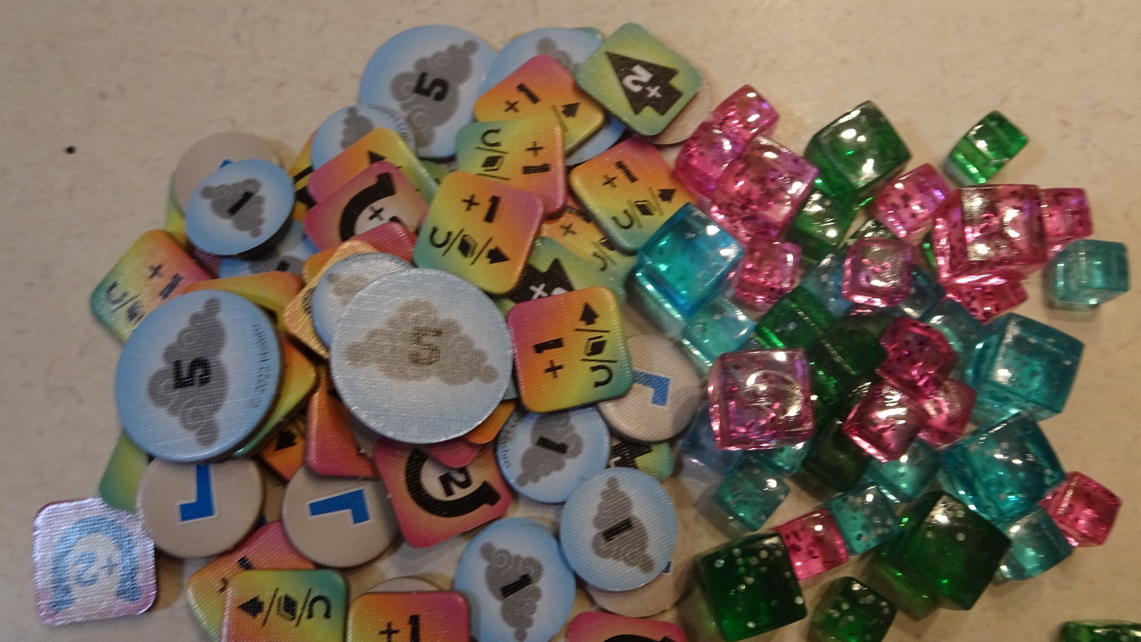 The challenges are what form the driving force in the game. They are required to be resolved quickly, as each player’s turn a cloud is added to it, and typically after only 5-8 clouds/turns the challenge fails. The pace is very quick, and here is where both the strength and flaws of the game come out. The challenges are not insurmountable, but they are very specific. One example being that each player needs two blue sugar cubes, which can be achieved typically, but at the cost of almost everything else. The balance of this is actually very impressive once you see how tightly it’s wound together. There is just barely enough time to do this, then something new pops up, now barely enough time to do that. It’s actually pretty good feeling the pressure and not being able to get your feet under you without feeling like one misstep equals a loss.