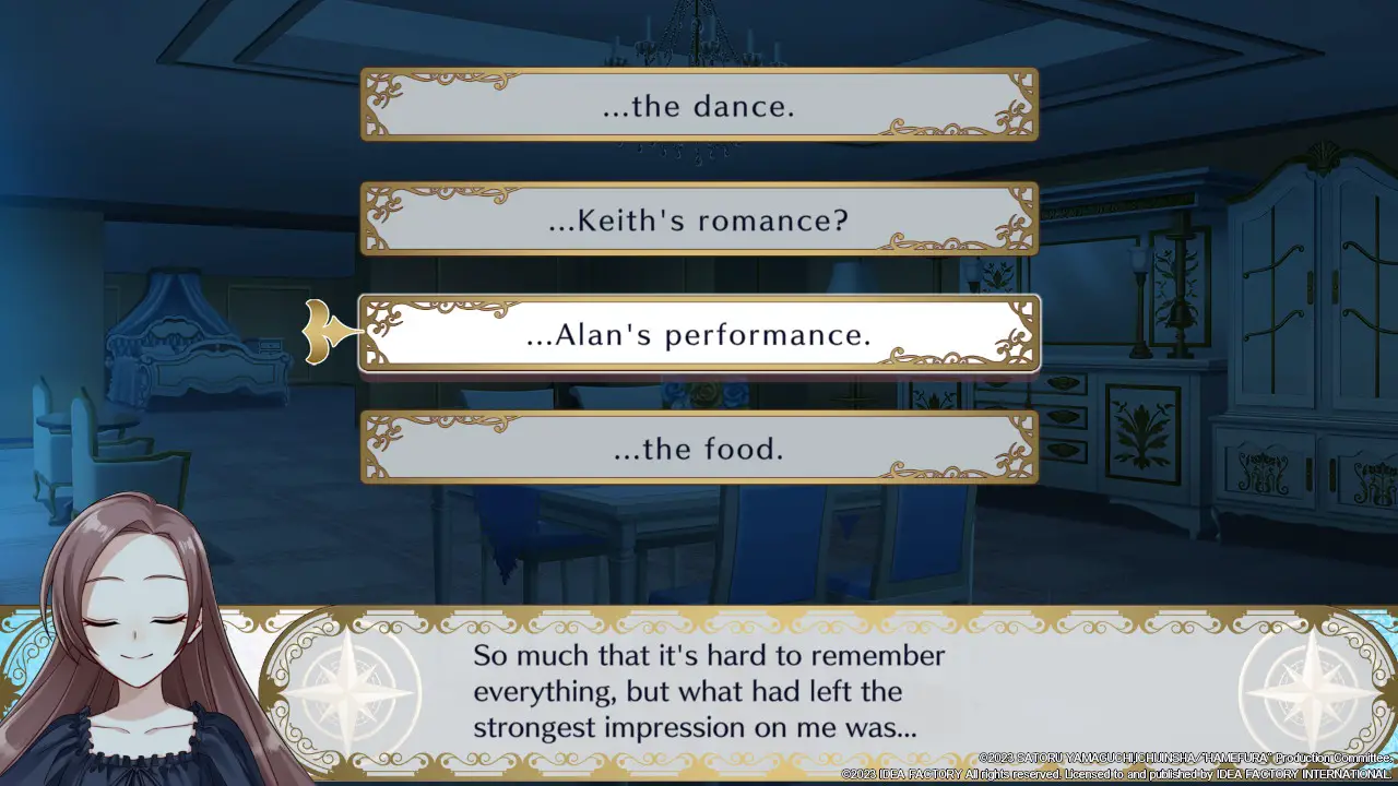 Even without an English dub Pirates feels like a lavish visual novel experience. Each character has multiple, well drawn portraits that are even lip synched to their dialogue. There’s a somewhat animated opening to kick off the game, and there’s even some visual effects during action sequences. I especially liked how character portraits would get closer or farther away in certain contexts, such as Geordo taking Catarina’s hard to escort her to the party before Mary can get an opportunity. A lot of visual novels don’t go this extra mile for a lot of understandable reasons, but the little details are very much appreciated when they do show up.