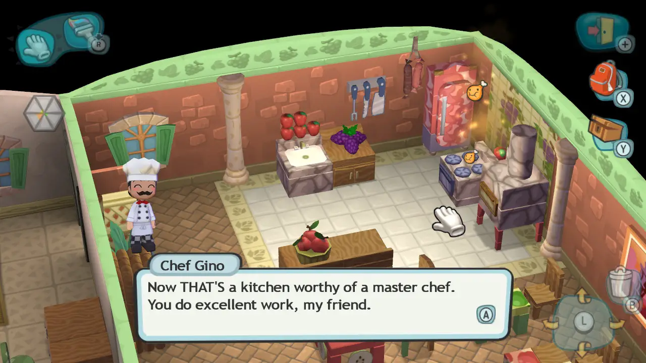 Once the object is done, you can deliver it to the client, placing it wherever you want in their house/place of business. You keep doing this over and over, occasionally moving in new residents by building them houses in a similar process (though without essences and more freeform), with each star level unlocking more areas in the town. Once you reach five stars, the game is essentially over, but you can keep building things and customizing everything to your liking.