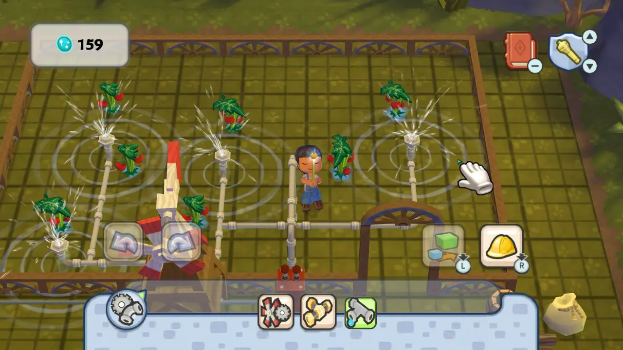 In order to create furniture, you are given a scroll with materials you must gather. These materials can be found in the overworld, from fruits on trees to ore you can mine and fish you can catch. You pair these with Mana, a currency to build items that you simply collect whilst doing the following activities. I never really had trouble having enough mana, but if you are struggling, Lyndsay can transmute items in exchange for mana.