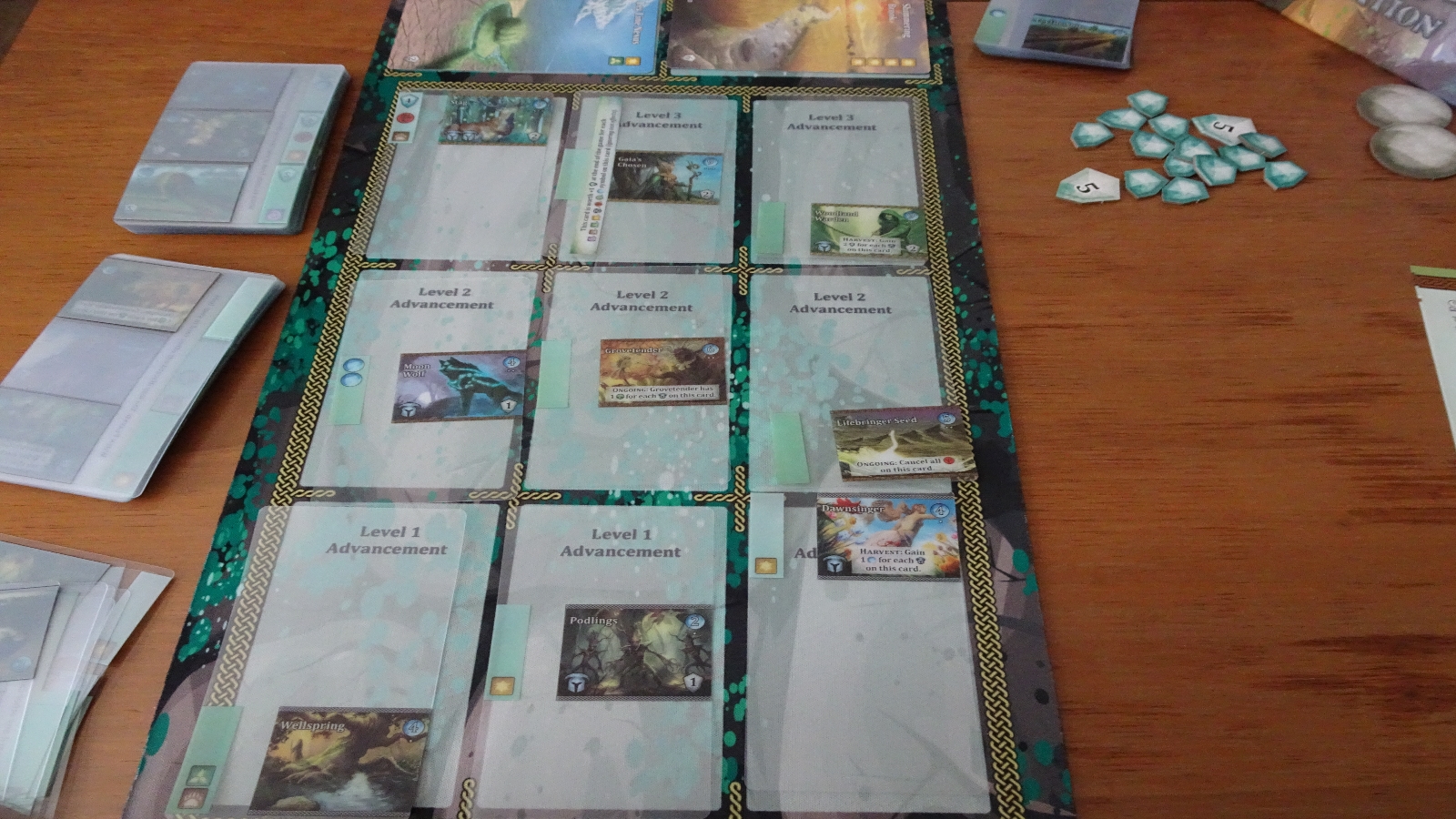 One of the other keys is that certain cards generate spirit tokens, which are another type of one-time resource generation, of which can be spent on the titular ‘Vales’. Essentially these are locations with great artwork that mostly generate victory points. They are not needed to win, but rather another path to victory that players can pursue.
