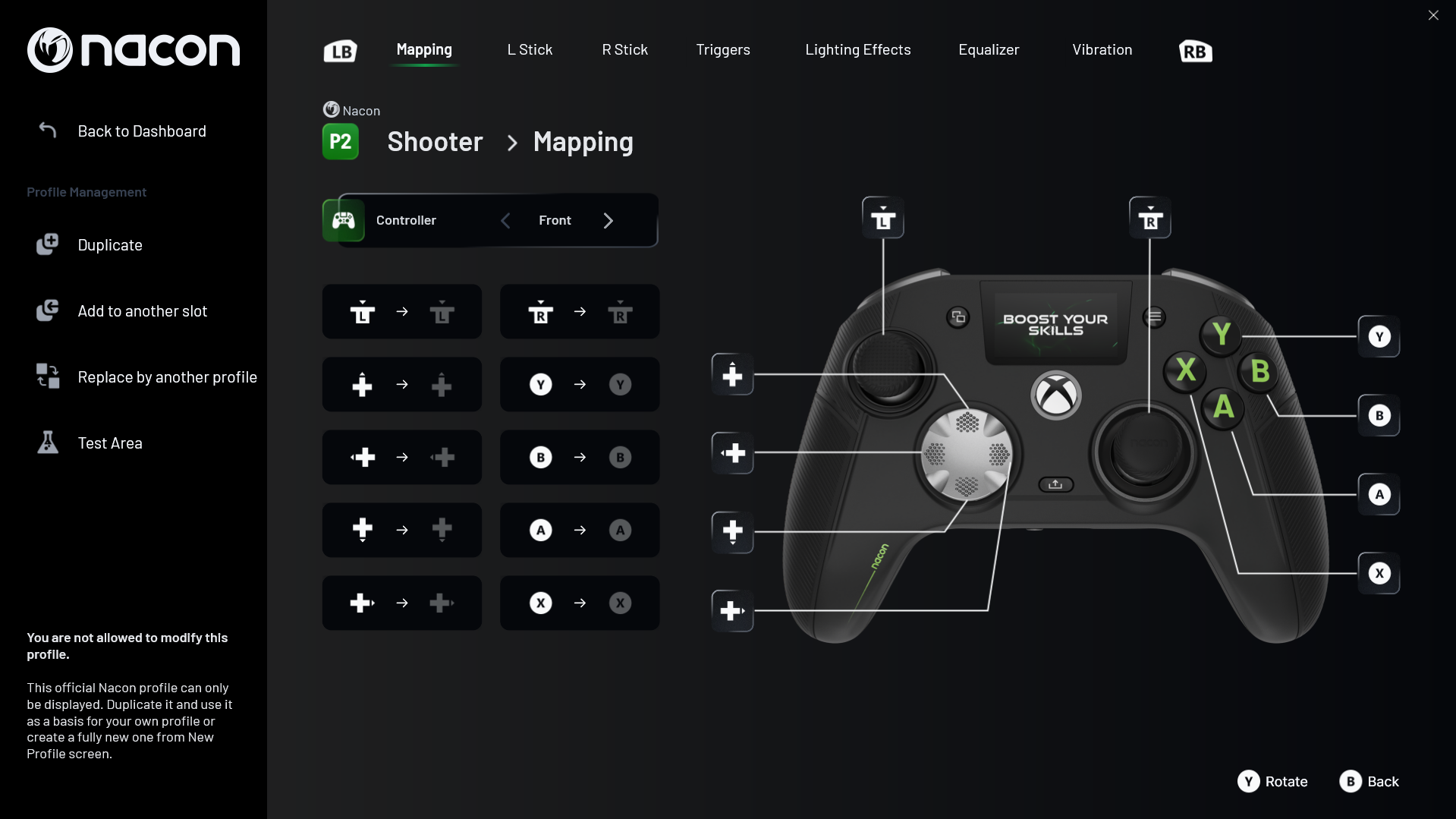 Now that we’ve unpacked the controller, it’s almost time to game. To get started with the RXU, we had to grab the new REVOLUTION X Unlimited software for both the Xbox and PC. This software will help you keep your controller up-to-date with the latest firmware, as well as being the hub where you make all your button customizations. Keep in mind, the original REVOLUTION X controller software is still out there, so make sure you download the right app. The controller will need to be plugged in with the charging cord for the application to fully open, and when it does, you will be prompted to do your first firmware update. After the update is complete, you’ll be able to dive right into the meat and potatoes of this controller. It is also important to note that your profiles for Xbox and PC are not saved to the controller directly and are therefore device-specific.