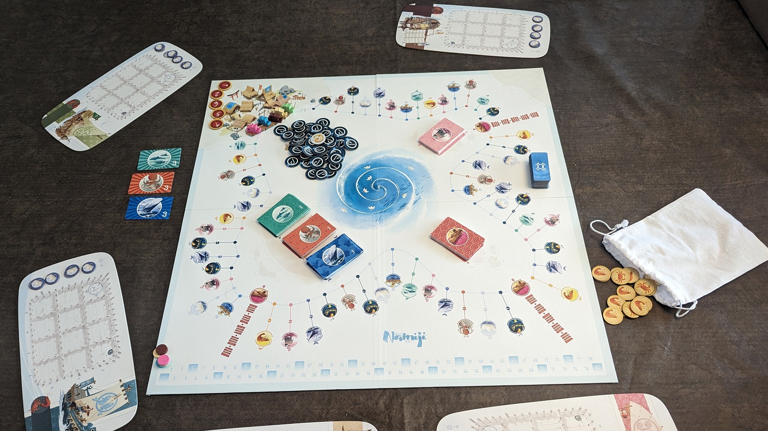 Board games grant players all kinds of feelings, from excitement as their armies clash together to fear and suspense as you sneak past your opponents. There is a great variety of board games, each with a different experience to offer. I’ve had many memorable moments from board games that got my heart pumping, but how does someone experience peace or serenity when playing board games? Few games try to capture this emotion as perhaps it isn’t as memorable, however I believe there is a place for this as eventually we all need a change of pace. Namiji might just be one of the closest ways to experience a sense of serenity while playing with a bit of cardboard.
