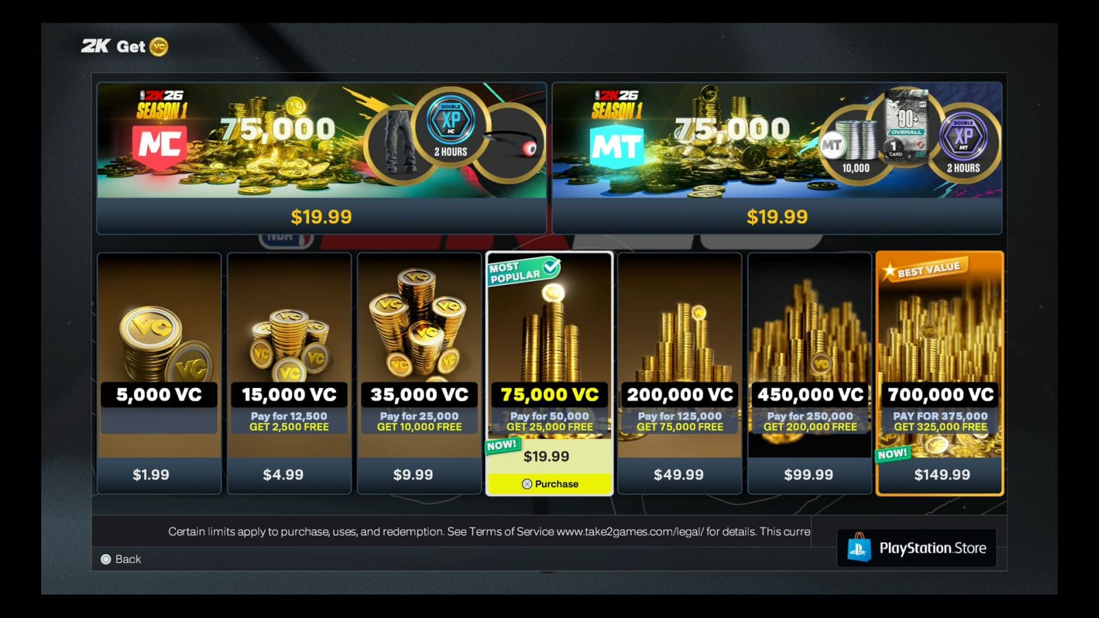 VC makes a return in this game, and I was shocked at the pricing. Before diving into it, I will say that I had no issue earning credits from playing, but it will take you a hot minute. If you want to speed up the process, expect to spend upwards of $149.99 for the biggest pack. VC is used to upgrade your character, buy clothes and boosts, and card packs for MyTeam. The lowest amounts won’t get you very far in the way of customization, depending on how much you like to accessorize.
