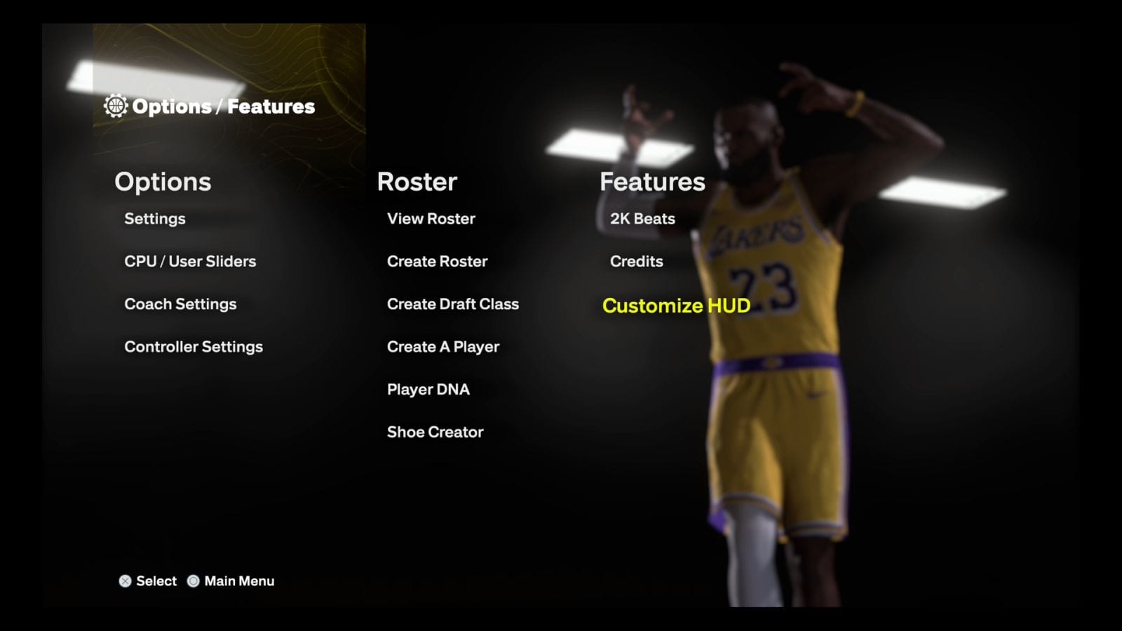 As for the Roster settings and features, you can Create A Player, hop into the shoe creator, create a Draft Class, Create Roster, or view the Roster. I didn’t hang out in these menus much because I prefer to use the options provided. The Shoe Creator is a pretty fun way to kill time, and a few of my friends spend a lot of time in this menu. You can also adjust your HUD, which made this game so much better for me. I have always had trouble tracking my player because of the way the camera works: These options fix that for me. You can adjust everything from your Player Indicator to the Rebound Indicator. These changes can be applied to all game modes, as far as I can tell.