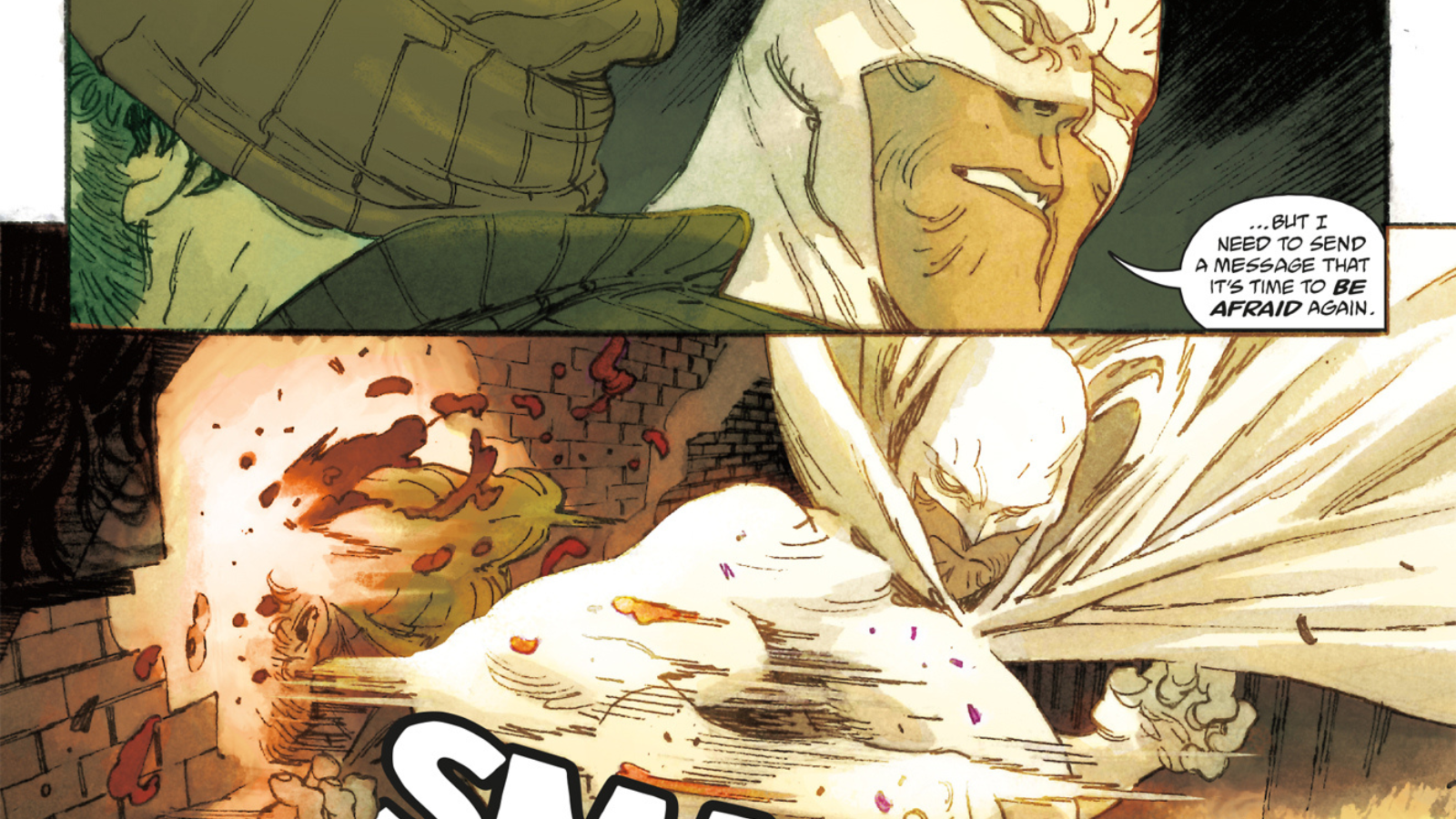 Artist Matteo Scalera adds to the excitement, from the perfectly captured sadism in the titular villain’s masked face to the desperate-yet-determined faces of the CIA agents. A large two-page spread mirrors the cover image with a terrifying message written in flames that perfectly accents the magnitude of Nemesis’s new threat: he’s back, and the whole world is going to know it.