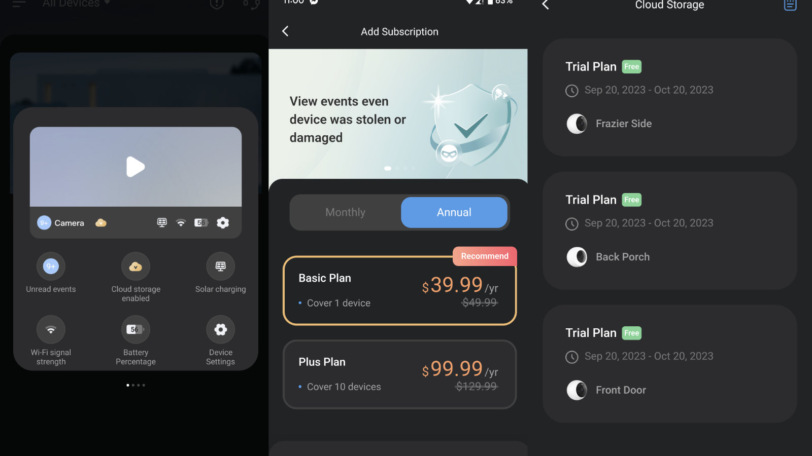 Activating the cloud is as simple as…well, clicking the small cloud icon underneath the picture. Each device is added individually, so you can pick and choose which device is added to the overall plan. This caps out at 10, as we said earlier, so you’ll need to be mindful of the count. There’s really nothing to talk about beyond this as that’s essentially the end of that function. If you dig into an individual device and hit the storage tab, you can clear out the space and clips you’ve collected. Beyond that, there’s nothing to see here beyond the bill tab.
