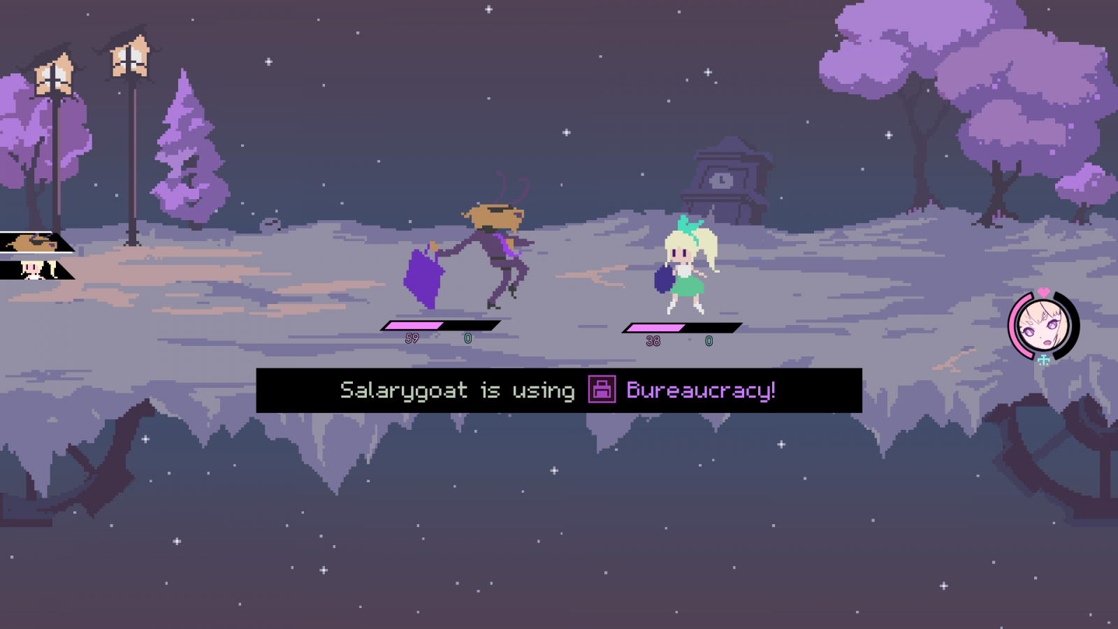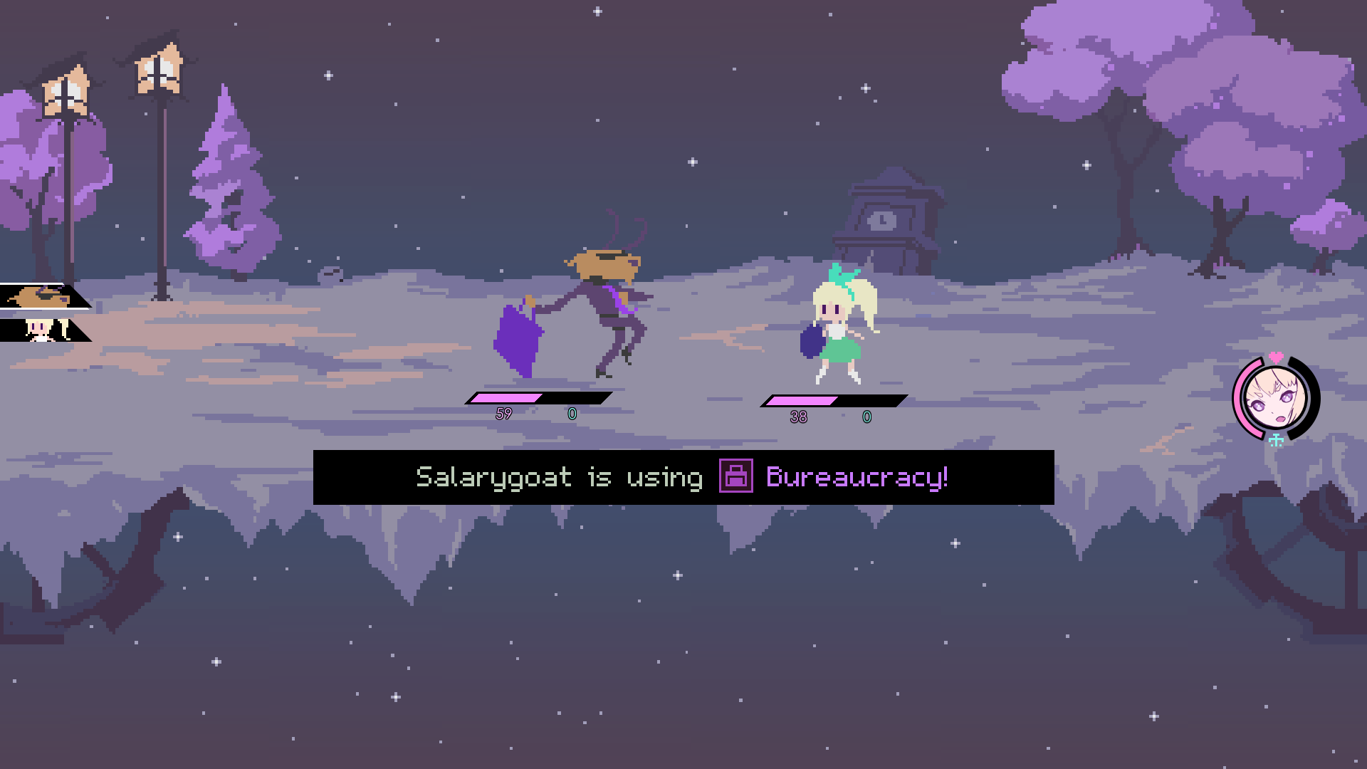 The flow of combat itself is solid. Enemies are varied with their own abilities for you to deal with. It’s a constant question of when to defend and when to attack. Defense, or Purity, decreases at the end of your turn and the moves that gain it are often on a cooldown. It allows you to absorb damage and unleash a counter-attack to deal out damage of your own. However, doing this at the wrong times could leave you vulnerable to a big attack that demolishes your health. It’s important to get the hang of it because fights, especially against bosses, can get rather difficult. However, Virgo Versus the Zodiac is pretty generous when you die, allowing you to pick up right at the beginning of your current battle. This encouraged me to experiment and I didn’t feel super annoyed when I died, instead I was ready to get back in and show that enemy who is boss! I’m Virgo! I’m not going to lose to some goat!