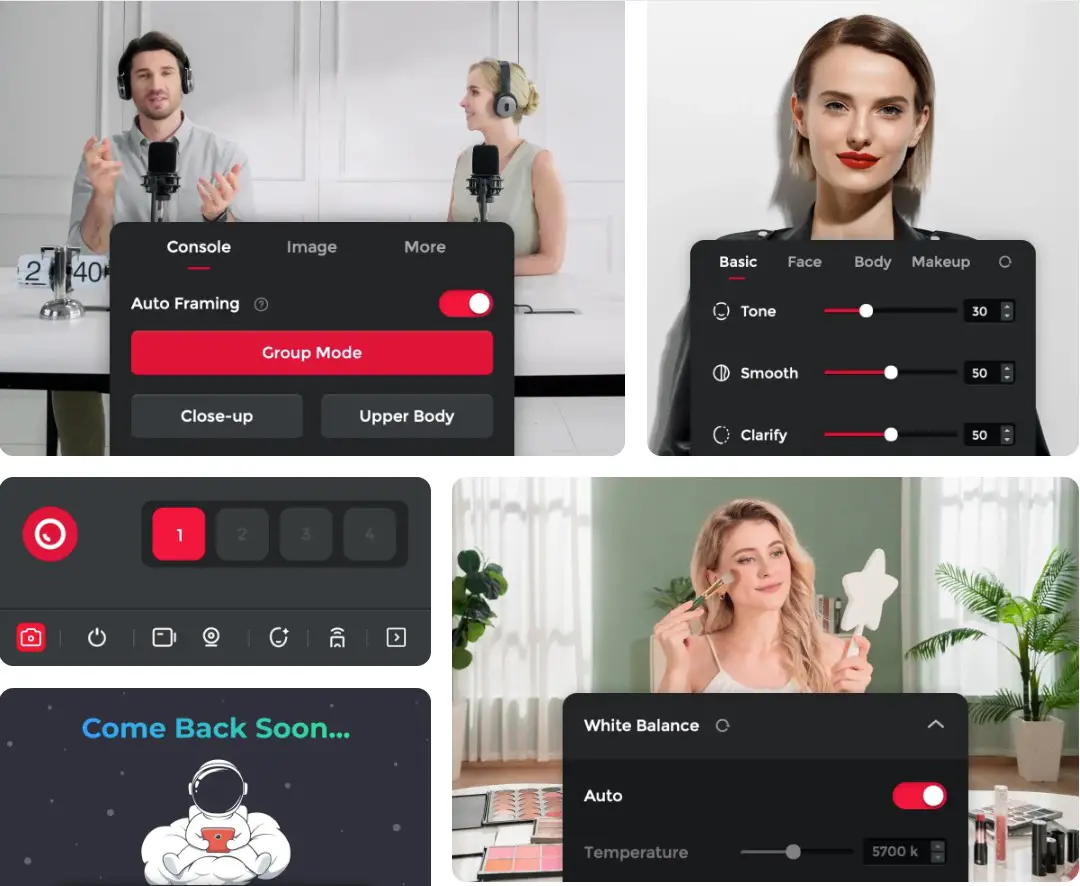 Clicking over to the Console tab you’ll find a wealth of control options for the camera and its focus. Here’s where the AI bits shine. Human tracking via AI isn’t new, but I’ve rarely seen it outside of expensive tracking systems from the likes of Tilta, or the most expensive PTZ cameras (Pan-Tilt-Zoom cameras – the ones you’ll find tracking you in office conference rooms). Here you’ll find buttons that say Group, Upper Body, and Close-Up.