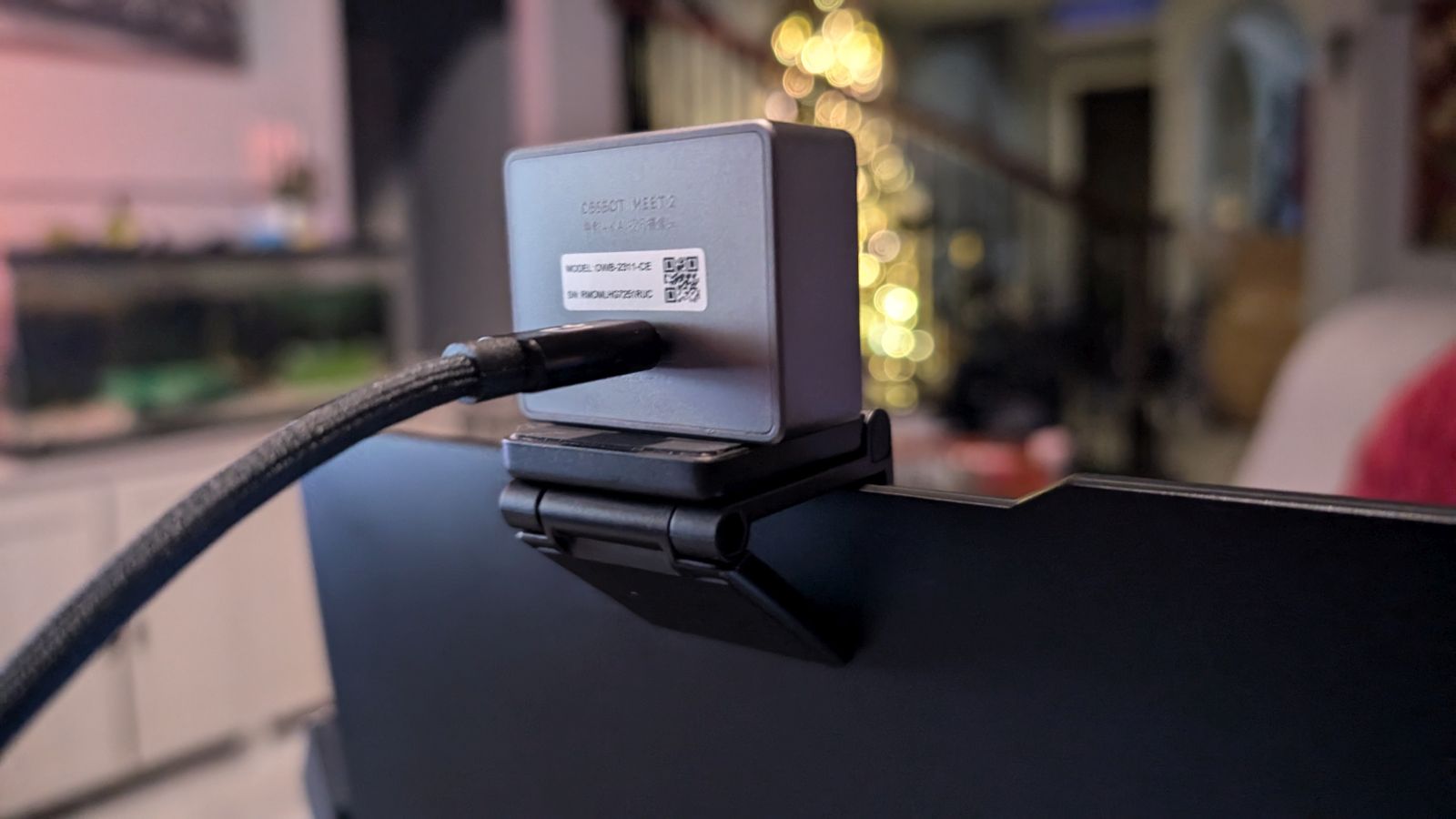 One of the included accessories is a small magnetic mount. One of the sides has a rubberized surface, and this is the Meet 2 will magnetically attach. The whole device can unhinge in two spot, allowing it to sit over a thin bezel laptop, with a small lip to ensure it locks in easily. It can also fit over a larger monitor easily enough. A small round metal disc with little pegs on the side can magnetically stick to the metal ring around the lens, and this disc operates as a physical privacy cover–the only kind you can trust. The bottom edge of the camera (the side with the threaded mount) magnetically attaches to that rubberized side. That’s perfect for shooting 16:9 aspect ratio, but if you’re shooting for TikTok or Instagram, then vertical is where it’s at. Simply pick it up and rotate it vertically and the camera will immediately snap to that aspect ratio–it’ll even do it while you’re recording if you wish.