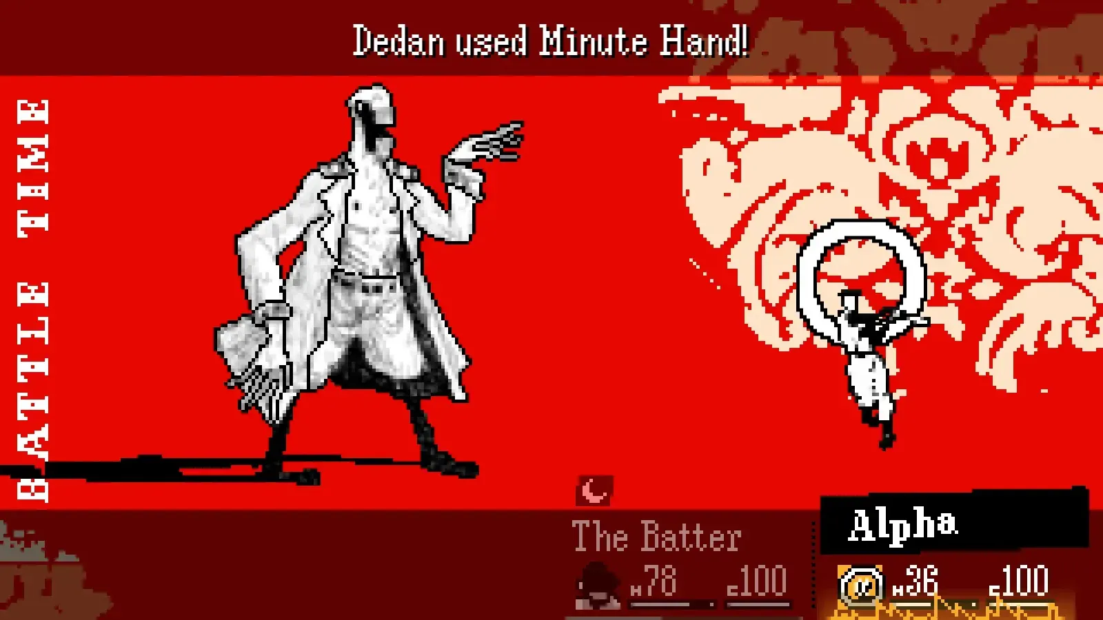 OFF also has your classic RPG battle system, with random encounters that are blessedly not too annoying and don’t occur that frequently. My biggest problem with OFF lies in its battle system, because there’s not really much to it. I never found myself strategizing to defeat a boss, and battles were often just chipping away at health. They definitely get harder as the game goes on, and the game provides the player with unique MP-type moves that can do a bit more damage, but nothing past that. You have your main attacker, The Batter, and three cronies that you pick up along the way. These add-ons provide a supportive role, curing your ailments and buffing your attacks. The game also has a weakness system that I felt like I never truly exploited. You have smoke, meat, plastic, and metal attacks, but again bosses can simply be won by using your best attack. Overall, I never blinked an eye at OFF’s combat, as it felt like a means to an end, with 99% of the player’s focus going to the story and world surrounding its gameplay.