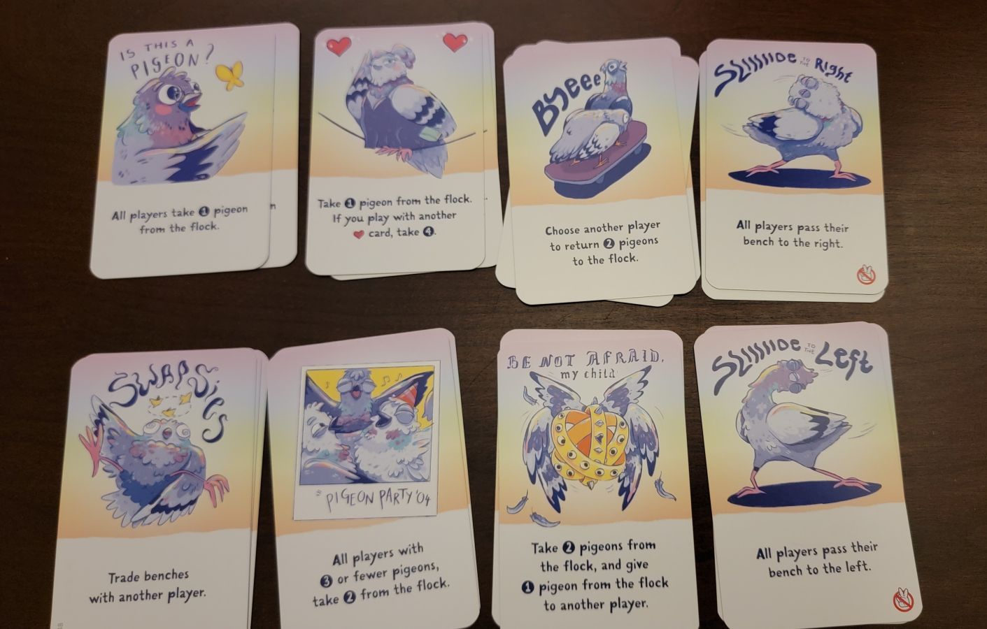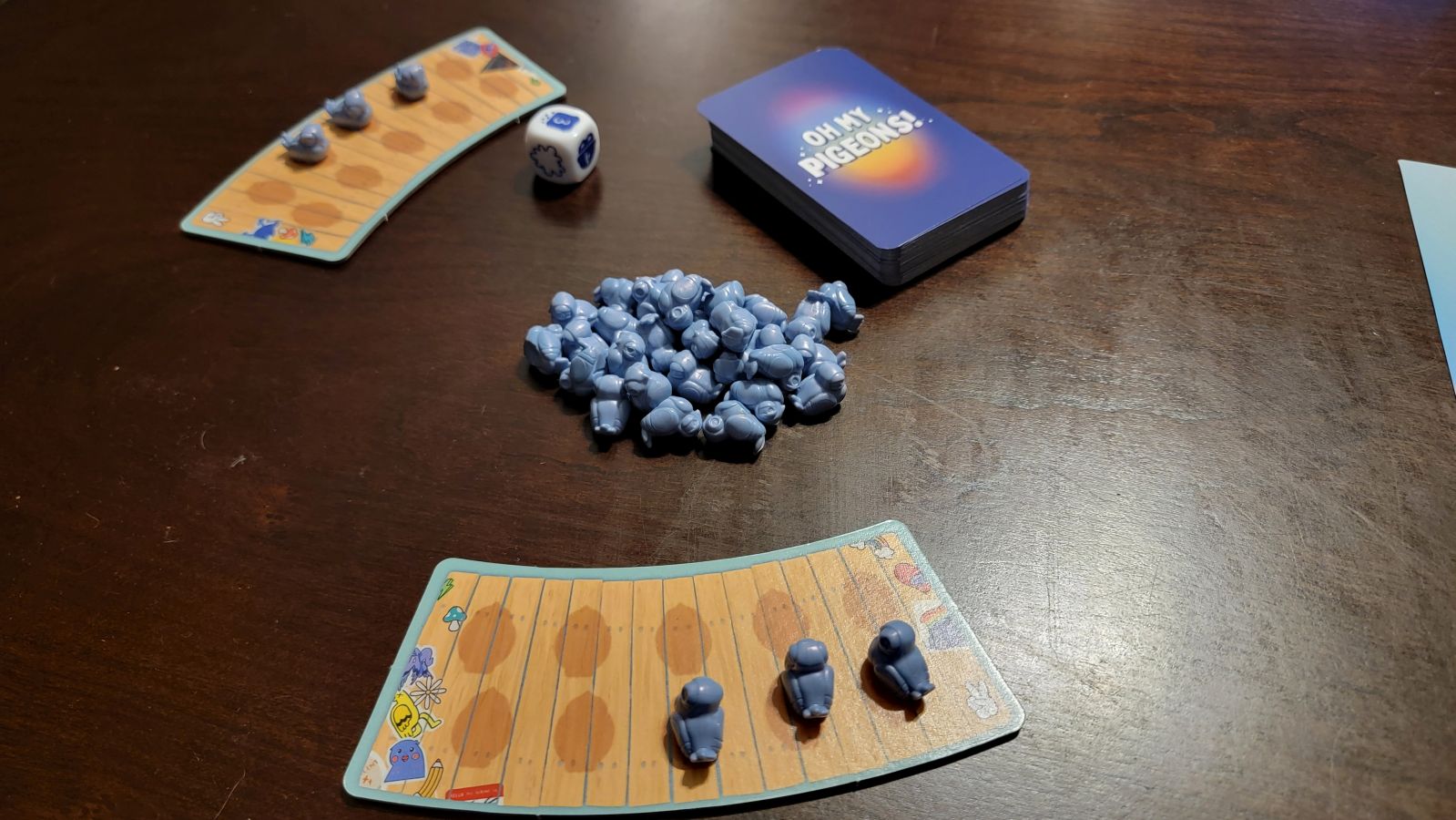 Each time I’ve sat down to play I’ve ended up playing four or five games in a session, which is a testament to how much fun it is even throughout multiple rounds. There are enough cards that each round feels unique, and the cards do a great job of keeping players on their toes about who may win. No matter how close a player is to completing their bench, all it takes is one card to send them back to nearly square one. Overall, Oh My Pigeons! is a near perfect example of a game tailor-made for quick play sessions and is sure to be a hit at your next gathering.