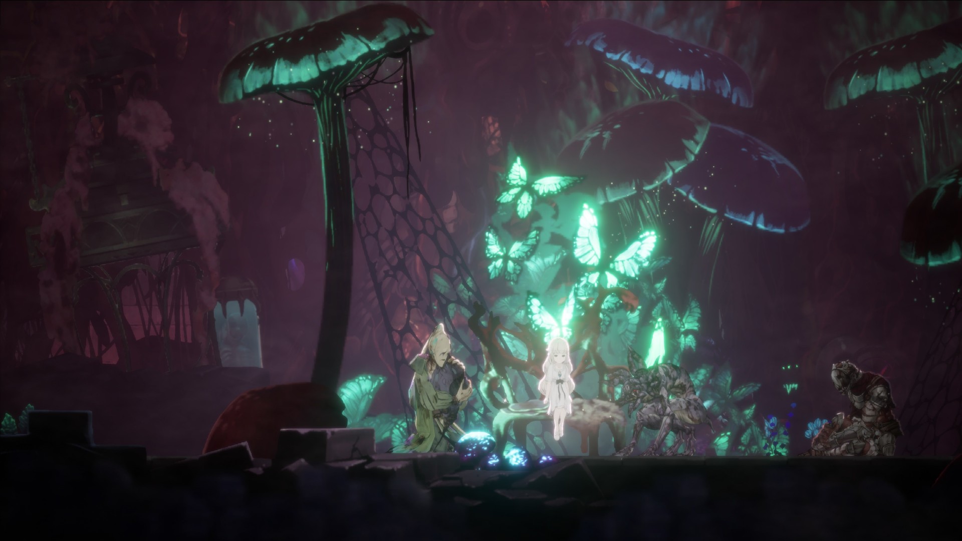 I find the concept really interesting as whenever a boss is defeated, their spirit follows Lily around and continues on protecting her like they did in life. These spirits all have their own types of attack, from the basic hack-and-slash trappings of the Umbral Knight to the poison gas of a Floral Priestess. It’s up to the player to pick and choose what spirit works best in every situation, especially during the more dynamic and challenging boss fights. These spirits can also be upgraded using consumable items called “Blights” littered about the game’s world. Each spirit has a specific type of Blight used to enhance its attacks. Other upgrade items include Amulet Fragments found throughout the game which increases Lily’s overall health.