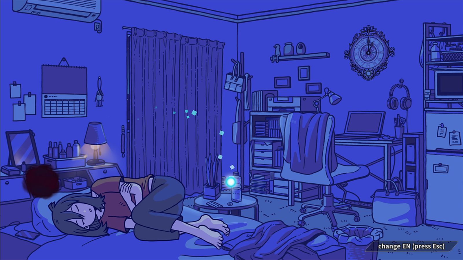In between nightmares, you get a third-person view of the main girl stuck sleeping in her bed. Clicking on objects around the room will provide narration regarding some aspect of her life, and explain why she’s in this situation. Upon finding the right object, the next nightmare will open up. There’s text for just about everything around the room, so be vigilant to ensure you’re not missing out on any of the story.