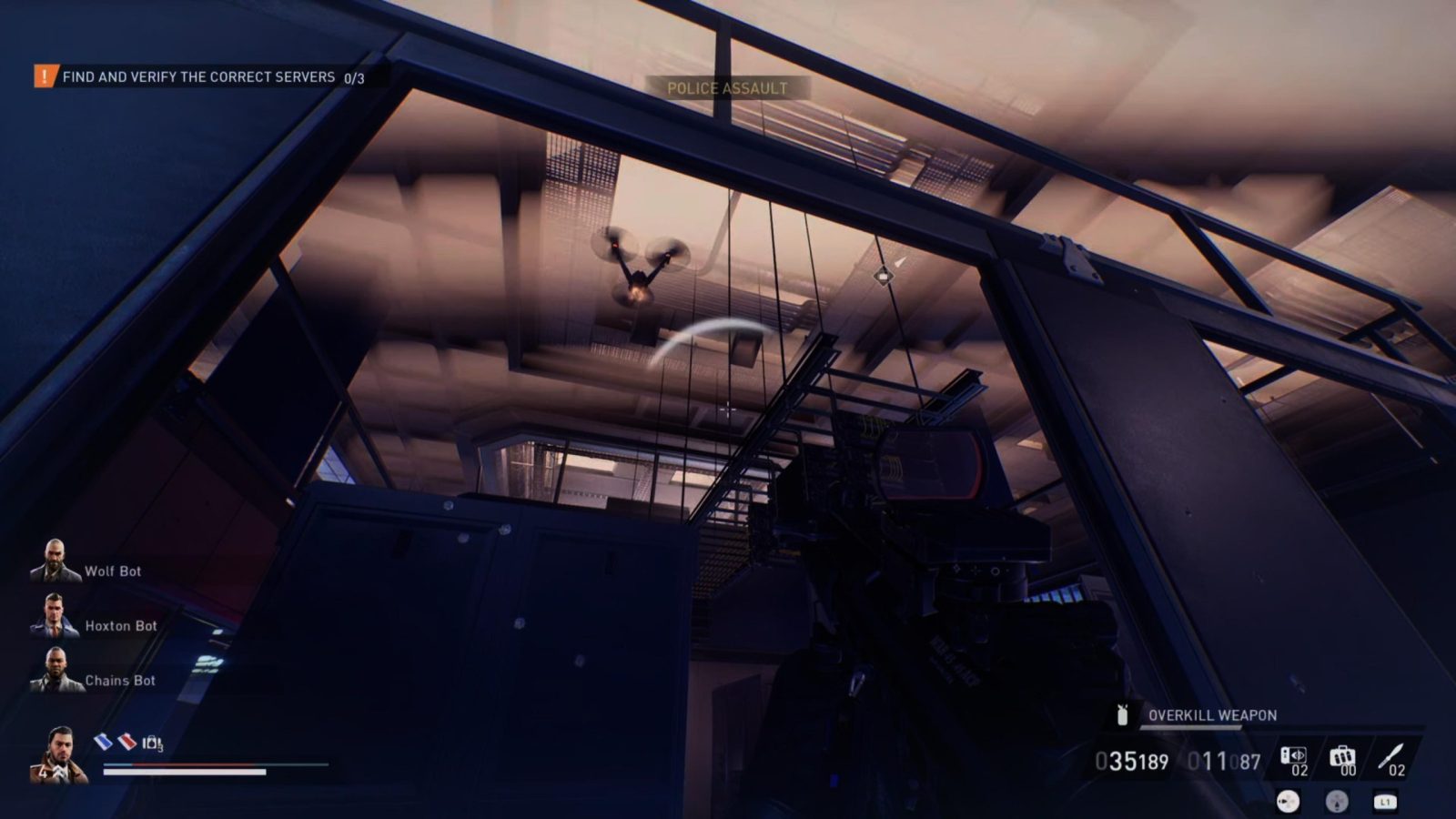 New to this heist are the drone-type enemies, which are deployed by the new Techie unit and fly through the air to rain down bullets from above. These pesky foes are relentless in their pursuit, and while they are fragile, they pack a punch. Their mere presence forces you to change up your strategy, as they can shoot over cover and can bring down your team if left unchecked. The Techie themself will hide somewhere on the map, and must be tracked down to stop the flow of killer robots. There’s also a suite of new perks to interact with these drones, such as allowing you to hack them to fire at the cops instead. This new enemy is a serious threat, and is absolutely a priority target, especially on higher difficulties. While the Techie is currently exclusive to the Syntax Error heist, the developers do plan on introducing this enemy to existing heists later down the line.