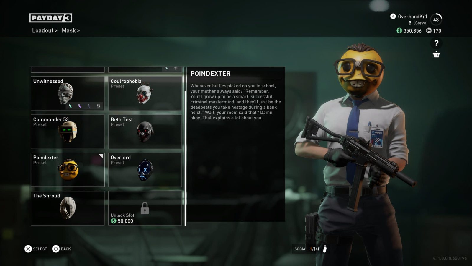 The tailor pack has some decent cosmetics to deck out your heisters with, containing four masks, four gloves and four outfits. The masks are pretty charming, with the poindexter nerd and emotive retro robot being my favorites, but the suits and gloves are simply okay. My biggest issue with this pack is that all of the masks are presets, meaning you won’t be able to customize them outside of their default look which is a bit of a let down. Whether or not these cosmetics are to your liking is of course subjective, and with the price of the tailor pack being higher than those found in Payday 2, this may or may not end up being worth it to you.