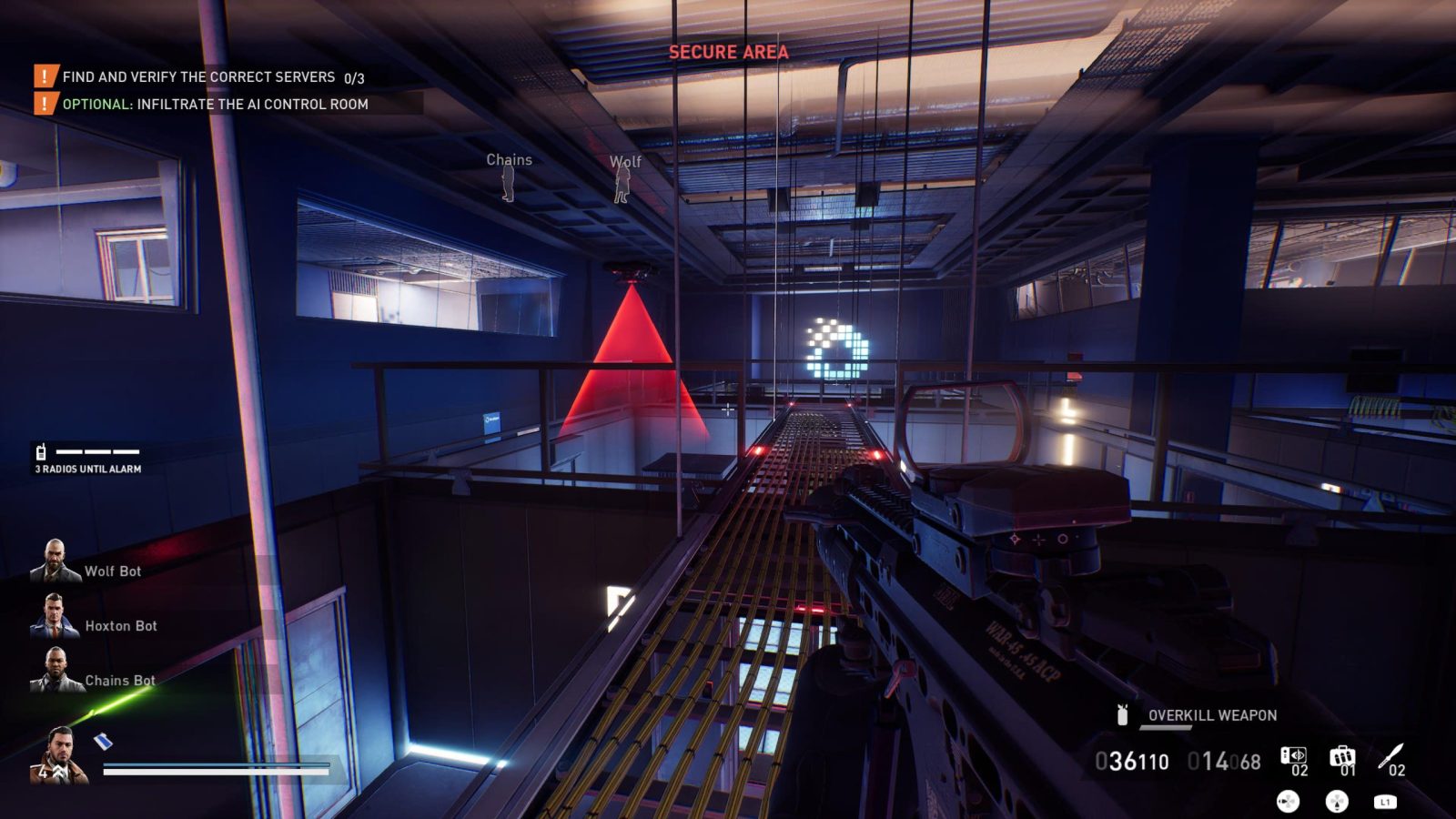Starting on the busy streets of New York, you’ll soon find your way into the belly of the data security giant. Once you’ve made your way down into the basement, you’ll need to secure the server racks containing the drone data and sneak out unnoticed. If you are detected, you’ll need to switch up your plan on the fly, deactivating the AI protecting the servers and blasting a new exit out from the underground. The path to entering the server room is pretty linear, and this theme continues throughout the majority of the heist. You’ll of course have branching objectives depending on whether or not you’re going quiet or loud, but beyond that each run will feel pretty similar outside of the randomized keycard and server locations. The heist overall is a bit on the smaller/shorter side, and while not necessarily a bad thing in my eyes, I would have liked to see maybe just a bit more meat on the bone.