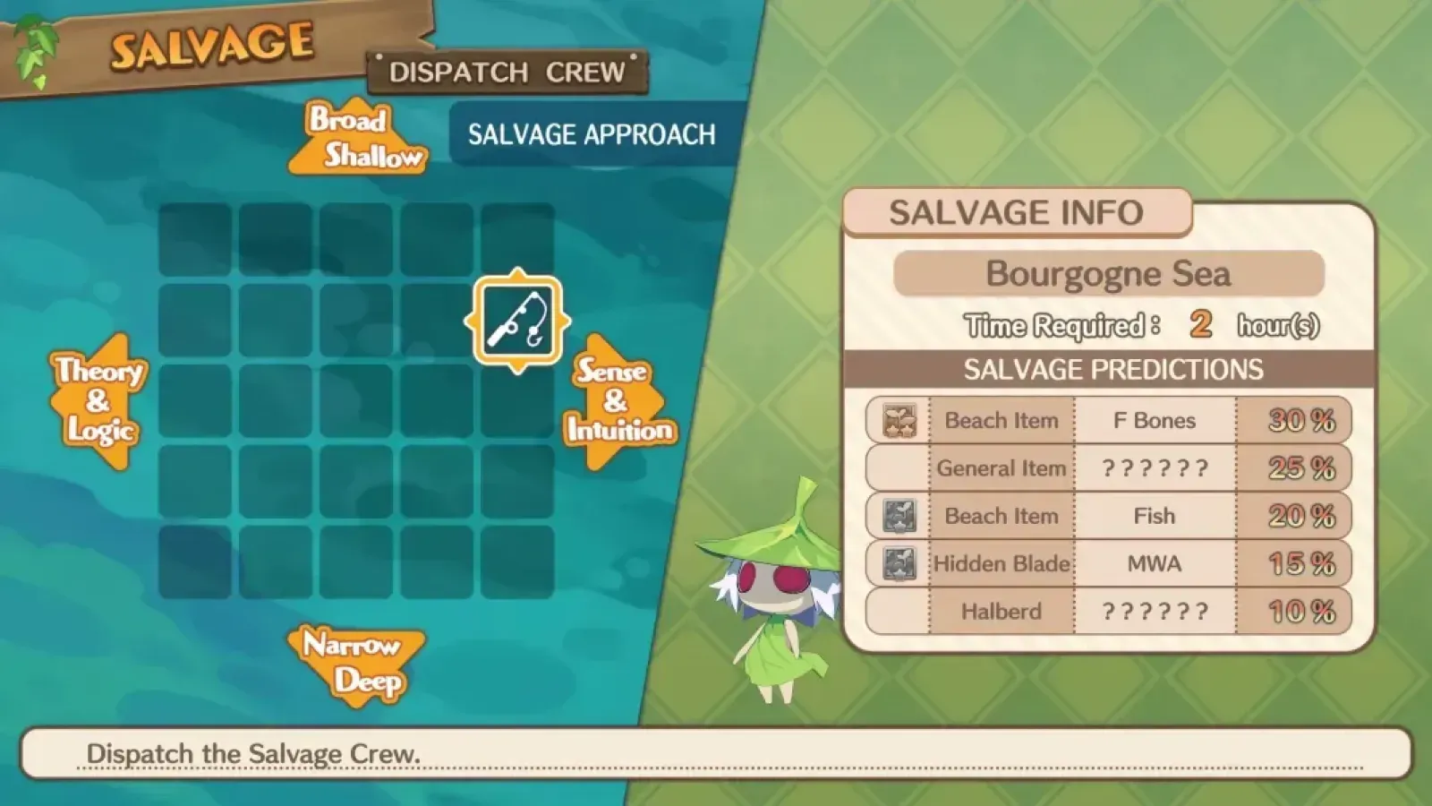 Salvage is another Facility I would suggest putting some time into from the beginning. You will unlock this when you create an Angler character. This uses in-game time to fish for items of all sorts. Weapons, items for quests, and items to spruce up the HUB world. I found this extremely helpful while doing Requests since the battles are short and you could get an item you need. With these items, you can either sell them or use them with a specific character. Which is a win-win for how little effort goes into using the Salvage ability.