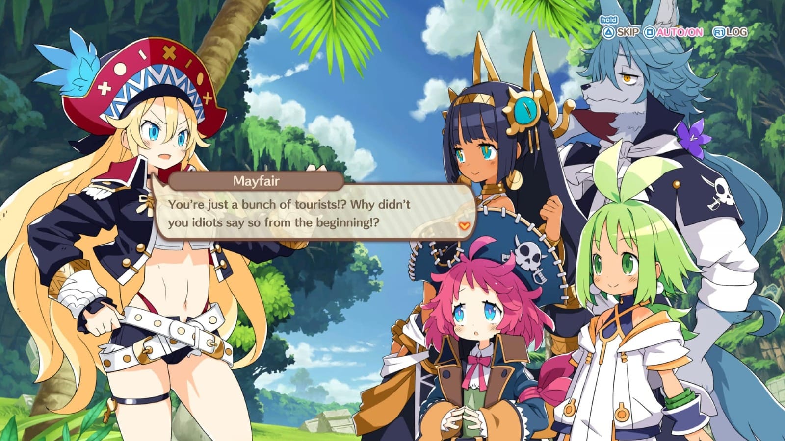 While we’re talking about the story, it’s extremely hit or miss. The story beats repeat each other quite often, leading to feeling like you’ve heard it before. Go to a new area, find something wrong in the area, discover the area is being cursed by a misunderstanding, Marona solves the misunderstanding with violence and moves on to the next area. This isn’t a bad thing to have for a story about pirates, but by the end of the first arc of the game, it’s gotten pretty stale. When you get to Chapters 8-10, though, a lot of things pay off, especially for the side characters you get early in the game. Things are revealed in these chapters that explain some of the past misunderstandings but also can sometimes be extremely predictable. I knew who the main villain was after chapter one. While that didn’t take much away from my enjoyment of the game, it didn’t allow for a “wow” factor when the big reveals happened.