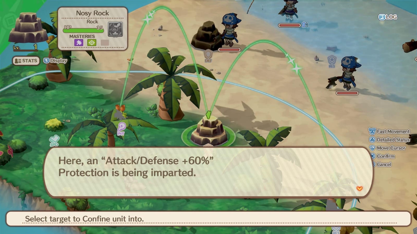 The combat feels like a mixture of Mario + Rabbids: Sparks of Hope and Final Fantasy. You’ll have a circle to move in; while you set things up, the movement isn’t spent. However, once you start making actions, the movement is used up similar to M+R: SoH. This is my favorite way to play these types of RPGs because it allows you to see what you’re doing before you fully commit to it and use a turn.