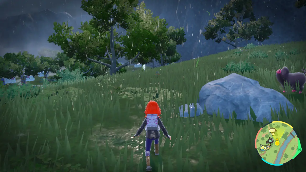 A lack of scaling is often a huge boon for open world games in my opinion. It’s fun to randomly come across a challenge that seems insurmountable at first, then coming back much later to find you can finally do it. Like the level 80 behemoths near the start of every Xenoblade game, getting your head handed to you sticks in your mind and essentially creates a player motivated “side quest” to come back and defeat it. Unfortunately in Scarlet and Violet these spikes aren’t the exception, they are the rule. One moment you’re having a great time exploring, and then suddenly all of the wild Pokémon are 10 levels above your team, making it feel a bit pointless to continue. This happens so frequently, I feel like this is the first Pokémon game I’ve had to grind in since Generation 5. It’s especially strange when the story events in these areas are the appropriate level for you, but you still can’t do them because all the wild creatures will destroy you.