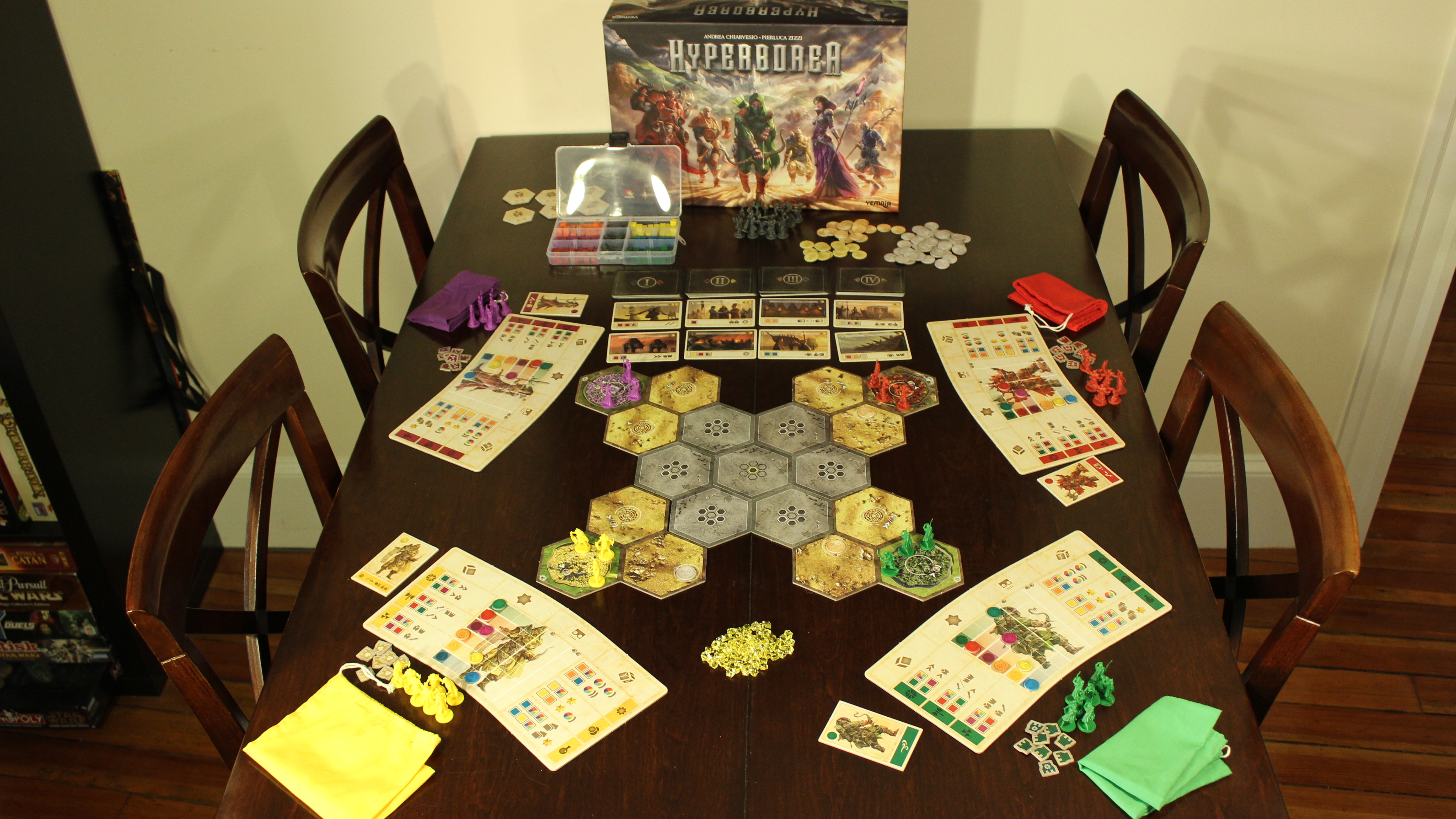 Hyperborea does present a problem for those who are color blind. I didn’t even think about it until I tried to play with a color inhibited friend. The cube colors are hard to distinguish if you have a hard time differentiating color, or even if you are in a low light situation.