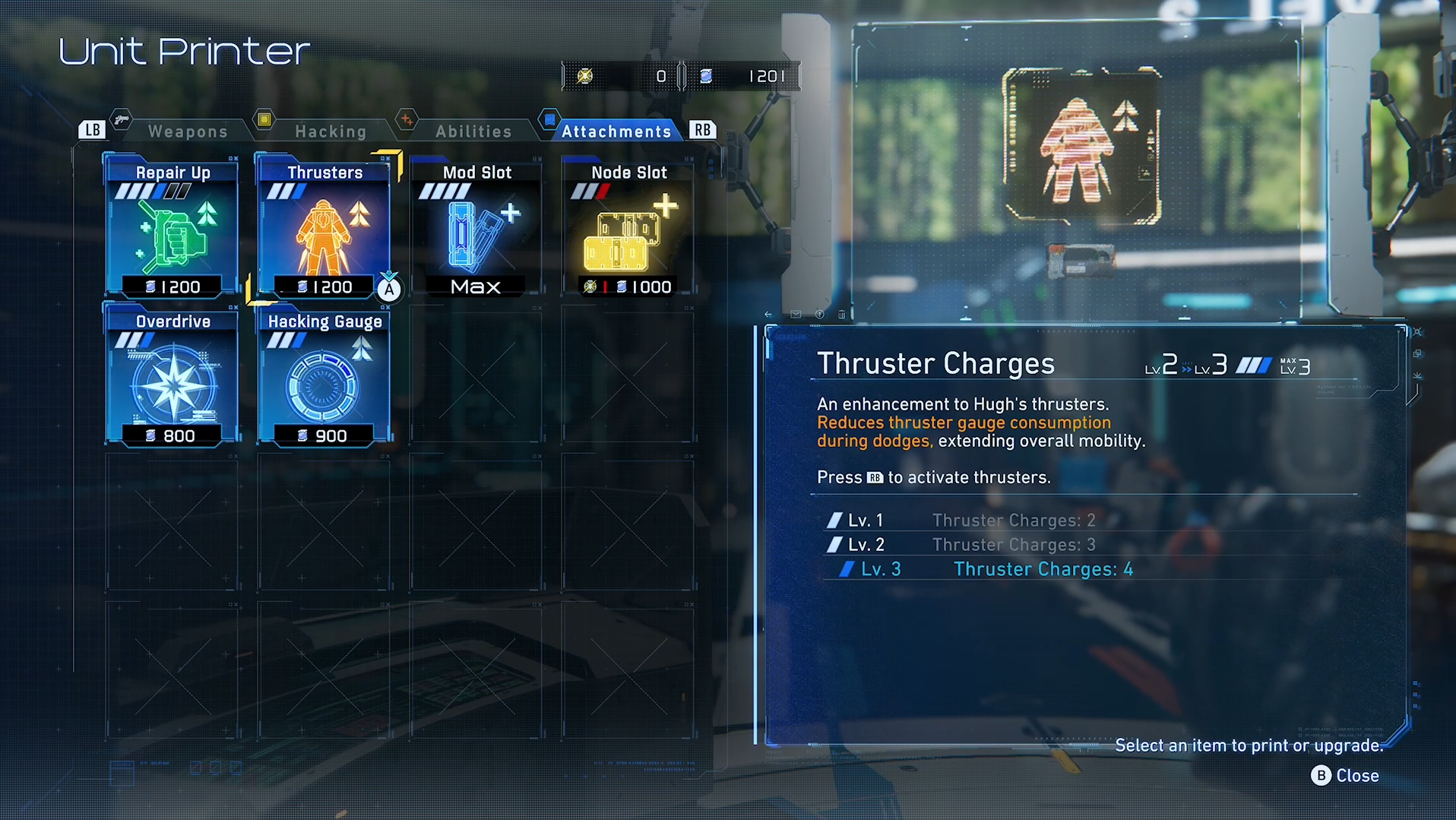 The Shelter is a part of the facility that acts as a safe haven for our heroes. I've already mentioned the REMs, but this is also where skills, weapons, and other goodies can be equipped and upgraded, including Diana's hacking abilities. There aren't any crazy skill trees to have to follow; you pick and choose the specific things you want to unlock or upgrade without having to pass through stuff you don't particularly care for. There are also training simulations you can hop into to try to hone your skills. Completing the simulations gives you more lunafilament and other bonuses. If you want to take a break from all the action, you can play Hide & Seek with Diana (she's not that good at it), read up on the different robots, and even change your suit.